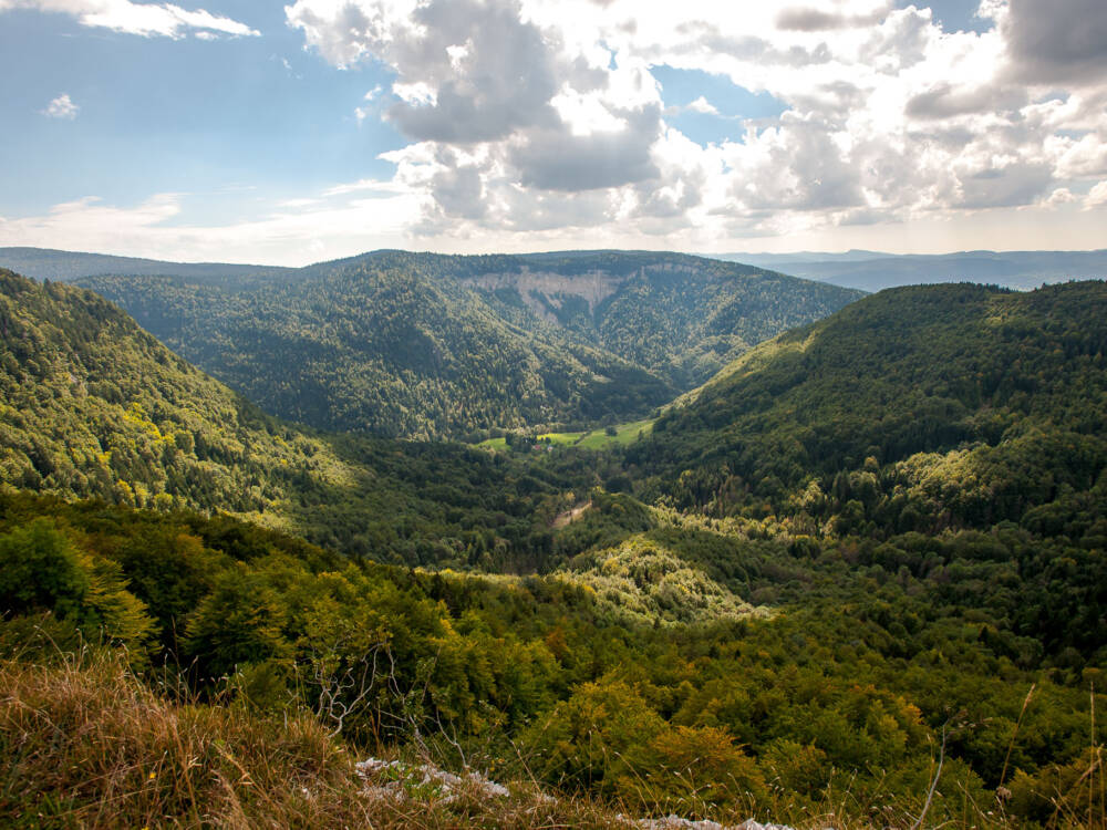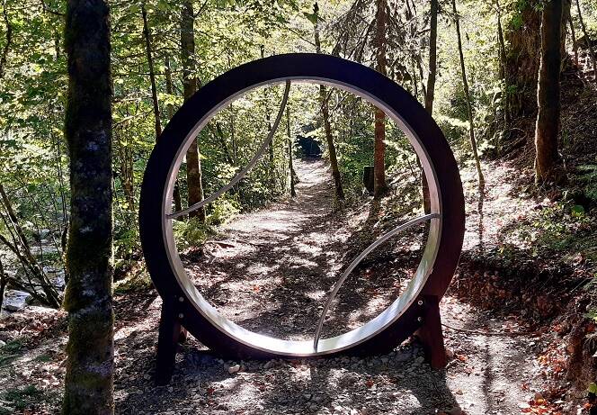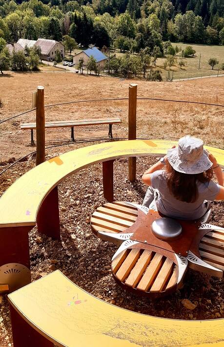 Entre sous-bois et vastes prairies, vous découvrez un paysage verdoyant typique du massif jurassien. 10 stations d'interprétation agrémentées d'un mobilier ludique donnent vie à des numéros spectaculaires : équilibristes, acrobates, dresseurs, voltigeurs ... un véritable terrain d'aventure et d'éveil pour comprendre le paysage en s'amusant.