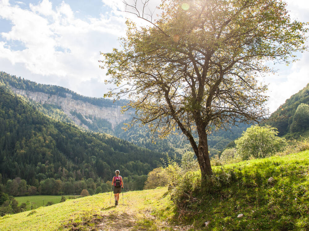 Balade au cœur du cirque d'Orvaz, un Espace Naturel Sensible formé d'un amphithéâtre naturel dessiné par deux larges falaises : la Roche Fauconnière et les Roches d'Orvaz. La Semine, petite rivière chantante, ajoute au charme des lieux.