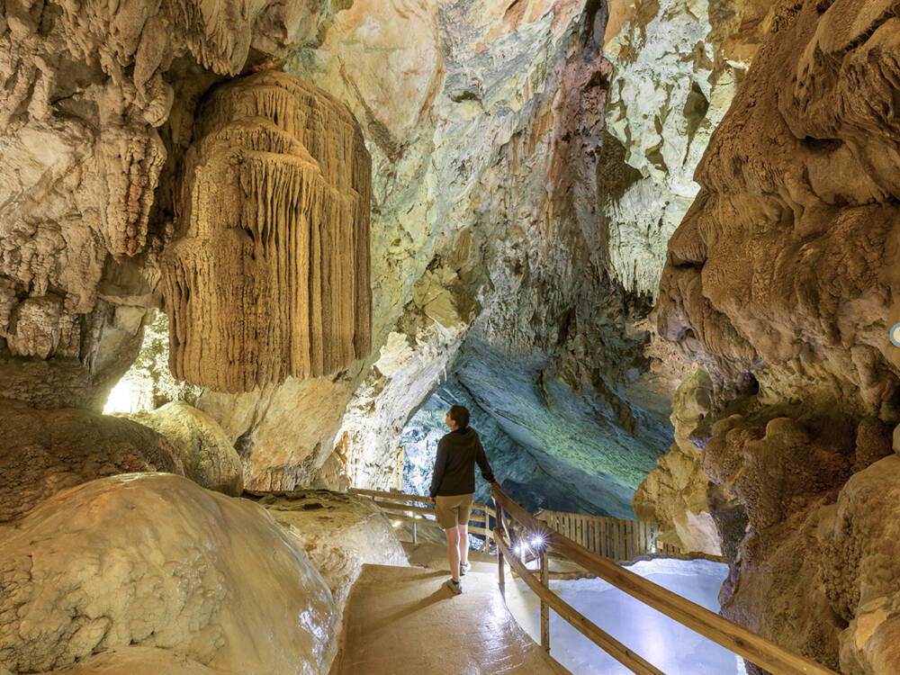 Venez découvrir un monde venu du fond des âges ! Rejoignez l'entrée des Grottes à pied (10 minutes de marche), puis poursuivez un cheminement grandiose, résultat du lent travail des eaux tumultueuses des grandes périodes glaciaires. Vous pourrez ensuite rejoindre l'abri autrefois habité par nos ancêtres et profiter d'un panorama inédit sur le vignoble. La visite guidée est d’environ 1h30 (de mi-avril à fin octobre).