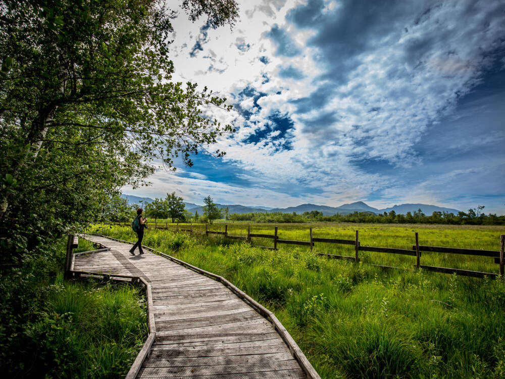 Le sentier sur pilotis est accessible aux personnes à mobilité réduite avec l'aide d'une personne accompagnante.