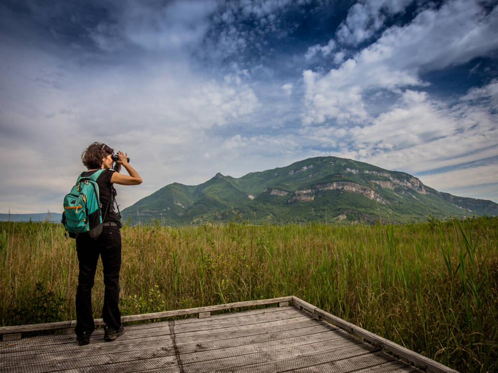 Le marais de Lavours est l’un des derniers grands marais continentaux d’Europe de l’Ouest. Il est constitué d’une réserve naturelle de 500 ha de prairie humide parcourue par un sentier sur pilotis de 1,5 km et situé au pied du massif du Grand Colombier.