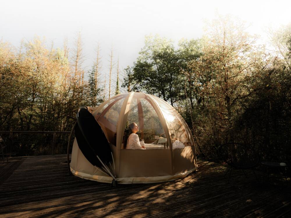 Notre bulle à ossature bois, vous offre les sensations d’une nuit en plein air. Vous découvrirez les joies d’une ou plusieurs nuitées en pleine nature avec tout le confort nécessaire. Sanitaires privatifs, jacuzzi et petit déjeuner inclus, notre bulle, conçu par Jean Lehmann vous offrent l’intimité au cœur des grands espaces.