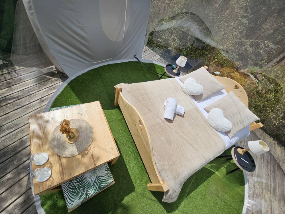 Immergées dans la végétation, nos bulles transparentes vous feront passer une nuit inoubliable à la belle étoile dans le confort intégrale d'une chambre d'hôtel.