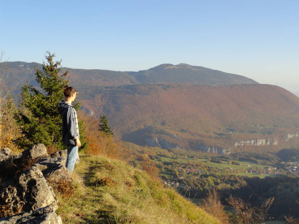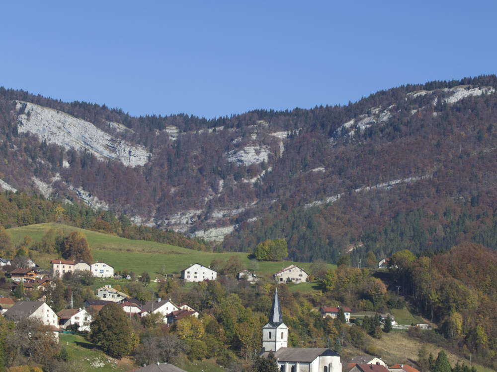 3. Obliquer à droite à deux reprises, passer au lieu-dit l’Achat (point de vue sur la Haute Chaîne du jura, le Crêt de Chalam, le Cirque des Avalanches…), puis atteindre une intersection.