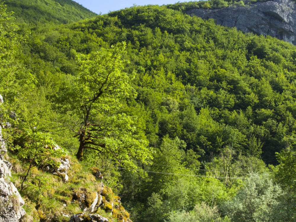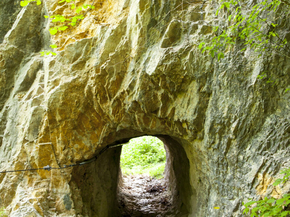 Au niveau des falaises d’escalade, des escaliers et un petit pont sur une résurgence permettent de rejoindre le bois puis le pâturage. On retrouve le chemin des gorges de la Volferine pour le retour au parking.