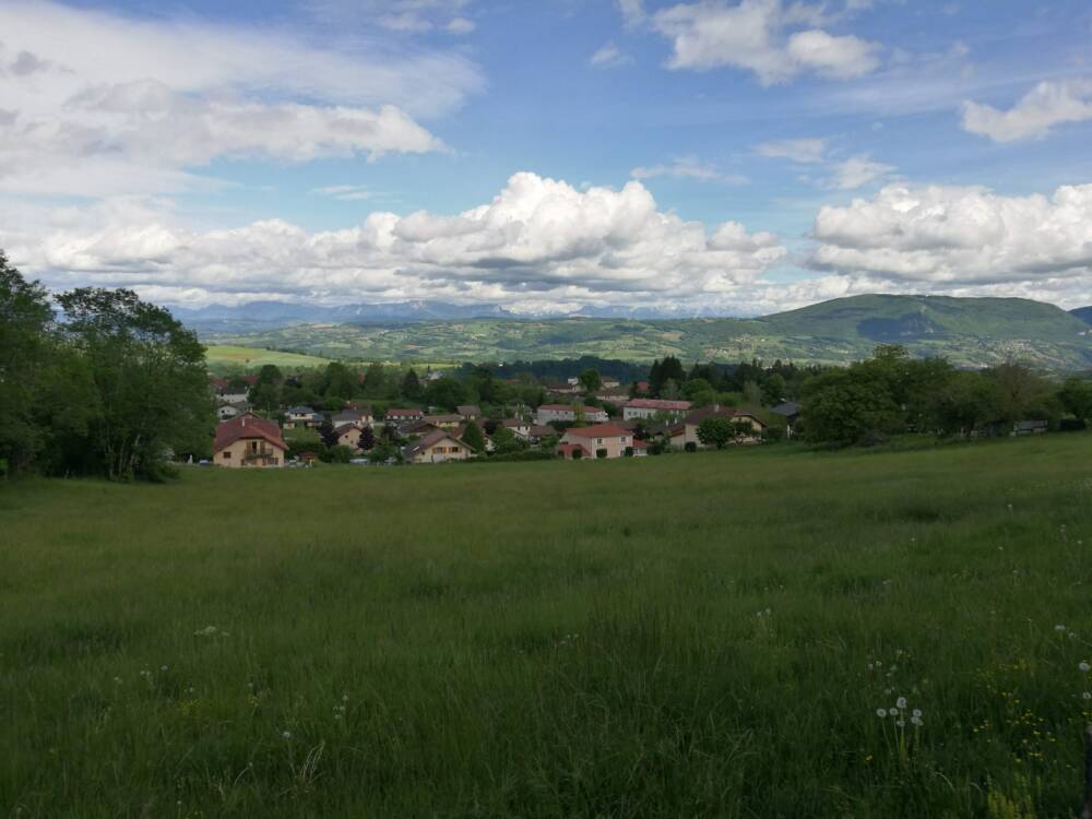9. Tourner à gauche sur cette route que vous suivrez pendant deux kilomètres, profitez des points de vue à l’Est sur le massif du Mont Blanc que vous pouvez apercevoir si le temps est dégagé.