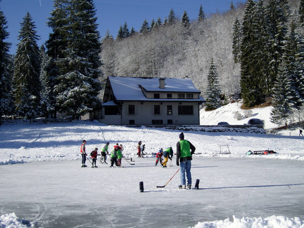 En hiver luge et raquettes et quand le lac est gelé, patin à glace sur le lac.za