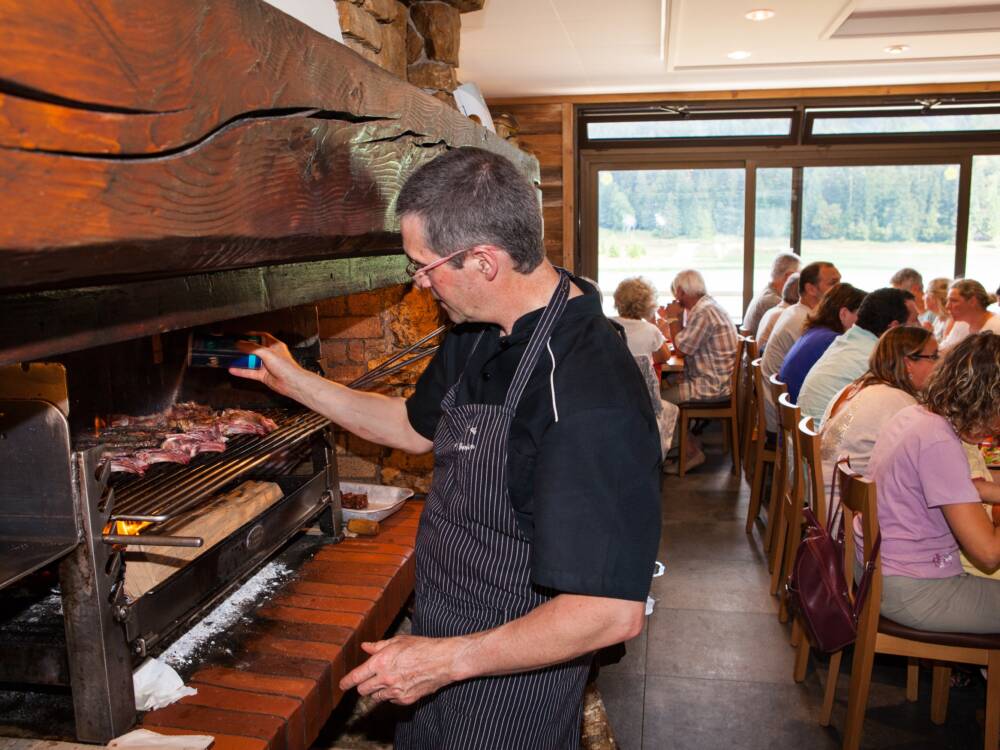 Profitez de ce cadre exceptionnel de lac et de montagne pour déguster les grillades et le saucisson au vin braisé cuits au feu de bois dans la grande cheminée au milieu de la salle ainsi que le filet de truite rose sauce échalotte, les croustades d'escargots, le tournedos aux morilles , sans oublier la fondue savoyarde en hiver ...