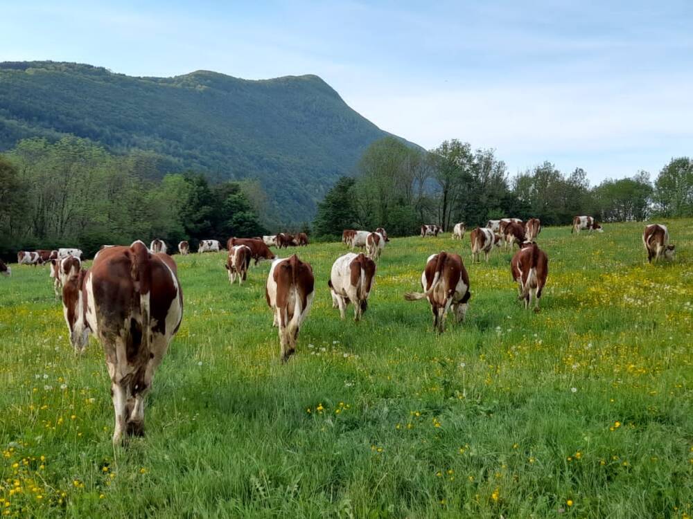 Ici, est produit du lait AOP pour le célèbre bleu de Gex et le comté. Viande en vente directe sur réservation, a récupérer directement à la ferme.