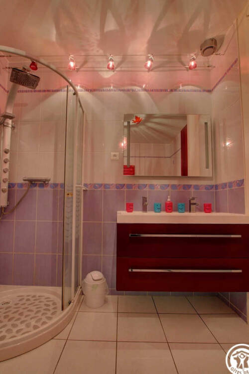 Accès, par un escalier extérieur, sur une grande terrasse. Cuisine équipée ouverte sur le séjour et salon, salle de bain avec douche et WC intégré, deux chambres : 1 chambre 1 lit 160*200 et 1*90 et 1 chambre 1 lit 140*190. Chauffage fioul. Vous profiterez pleinement de la terrasse (42 m²) qui domine la campagne et la montagne environnante. Ce gîte se situe au pied du massif du Jura et ses atouts touristiques. Parking privatif. A découvrir : sentiers balisés (100m), la station de ski familiale à 8 km. Genève et Annecy à 48 kms.