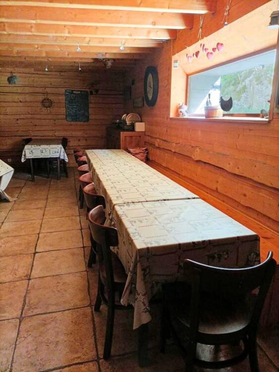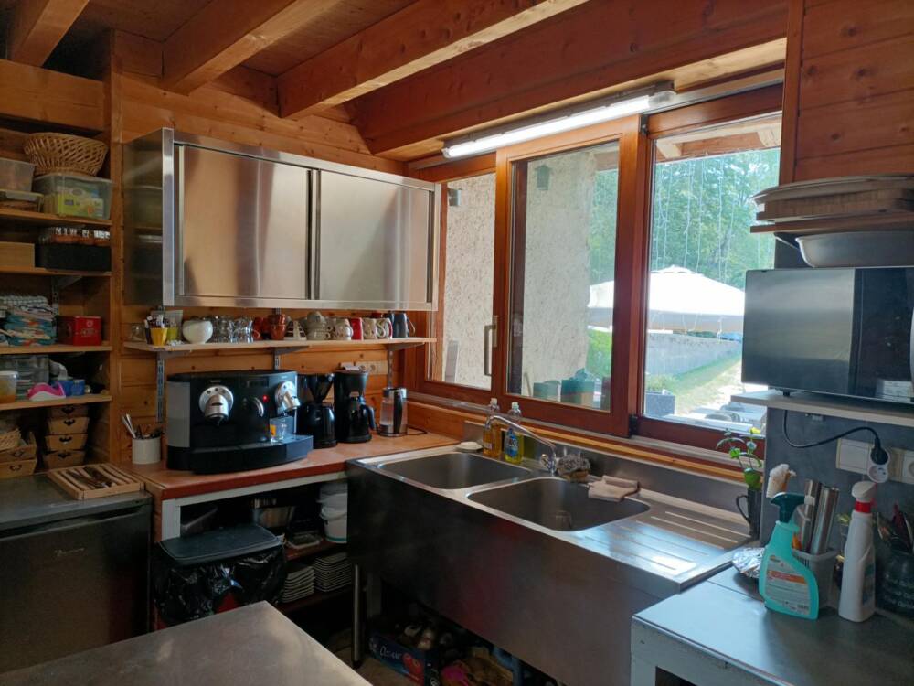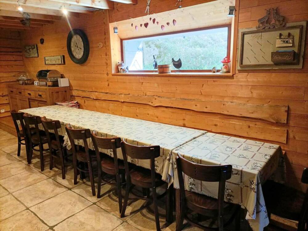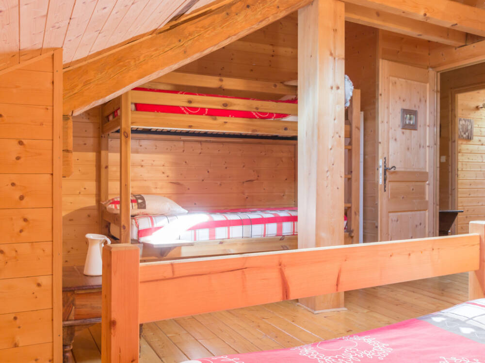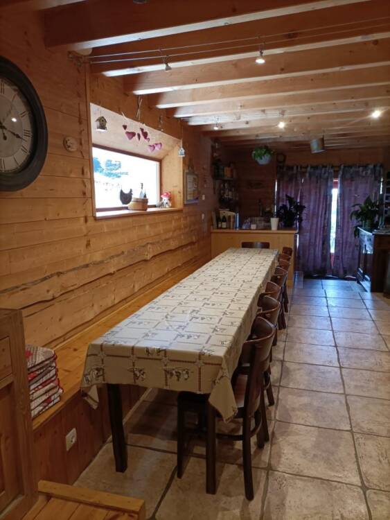 A 700 mètres du village. Accès sur un hall, un séjour avec coin salon (cheminée) pour profiter d'un moment de détente entre amis ou famille. Deux WC indépendants. Ce gîte à la décoration chalet et son ambiance cocooning, propose 5 chambres : 2 chambres - 1 lit 140, 2 chambres - 1 lit 140 et 2 lits 90 superposés, 1 chambre - 1 lit 140 et 1 lit simple. Douche et lavabo privatif à chaque chambre, 2 WC indépendants situés au même niveau. Chauffage Electrique et bois. Ski de fond et randonnées au départ du gîte, pour une étape ou un séjour, à la chambre ou l'ensemble du gîte.Pas de gestion libre