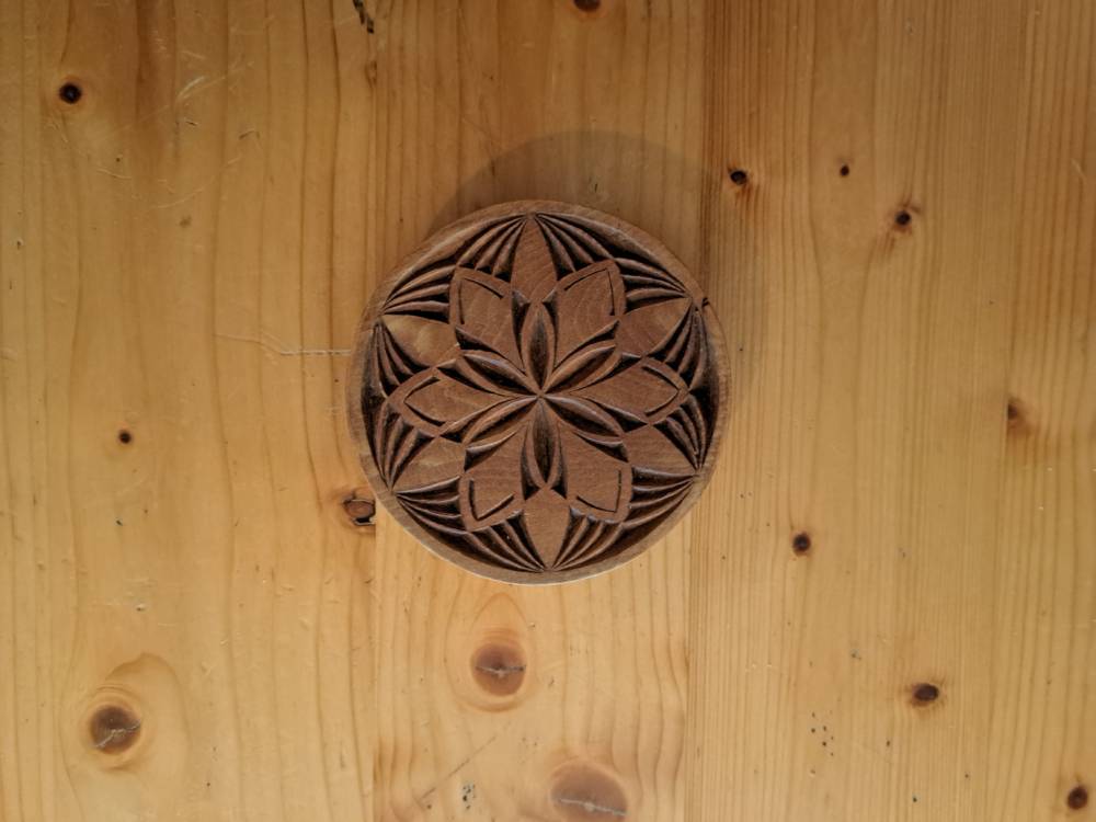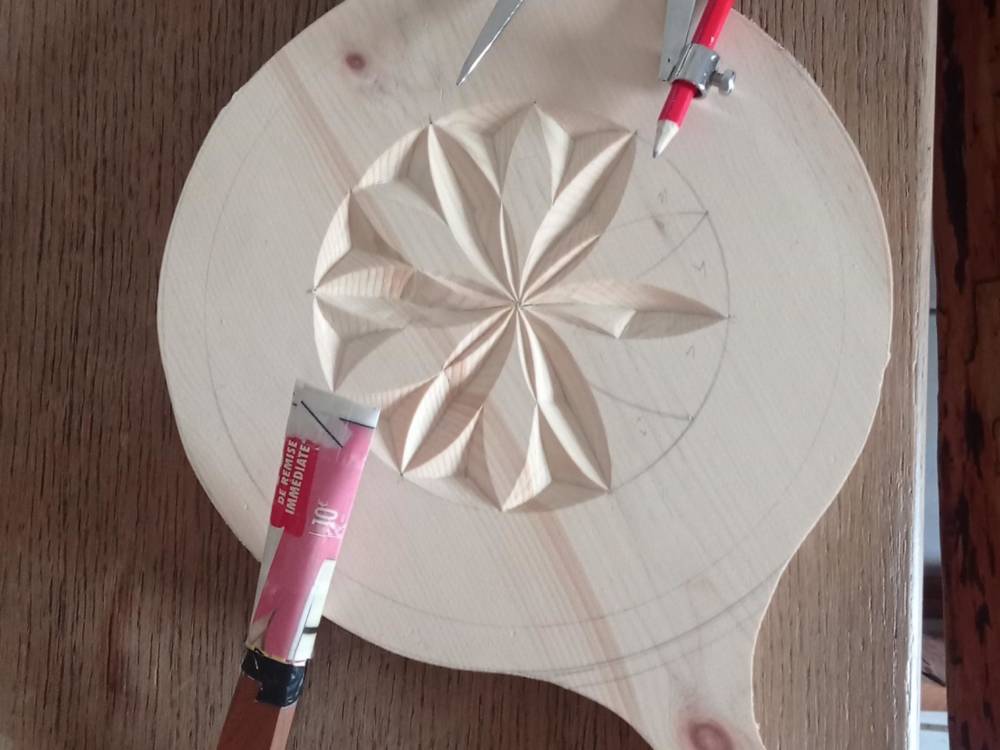Durant 2h30, je vous guide pas à pas pour réaliser votre propre sculpture : une rosace dans du pin cembro, un bois tendre originaire des hautes montagnes des alpes."