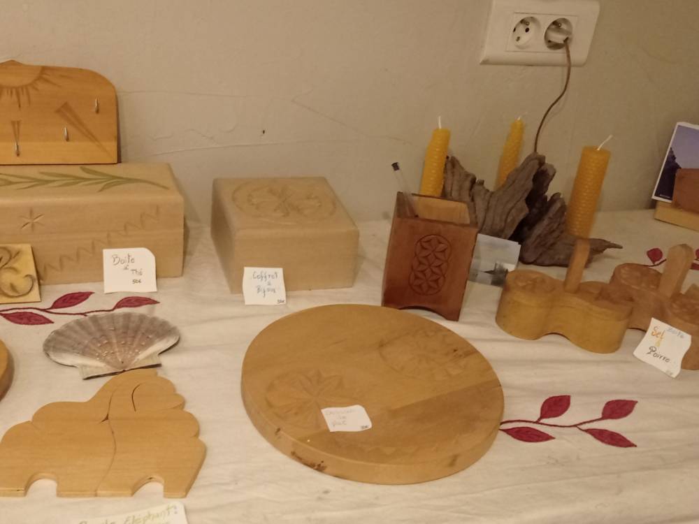 Ma boutique est ouverte sur rendez-vous, vous trouverez mes créations sculptées selon le travail du bois typique du Queyras : des boîtes à sel, des coffrets, des dessous de plats, des porte-clés, ainsi que d'autres créations personnelles : mug, magnets...