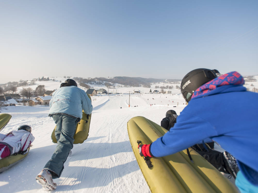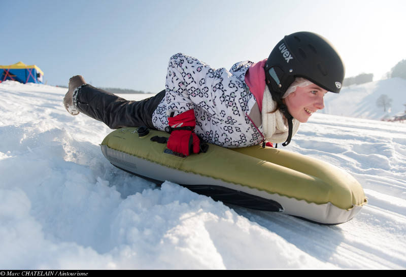 Des luges à sensations. Une luge gonflable sur coussin d'air où le pratiquant est couché à plat ventre, la conduite est sûre, facile et instinctive. Accessible aux personnes qui ne savent pas skier et qui veulent s'amuser dans la neige.