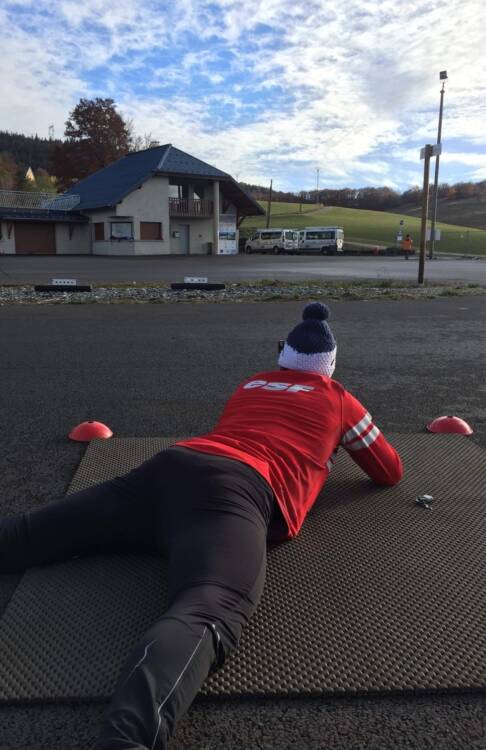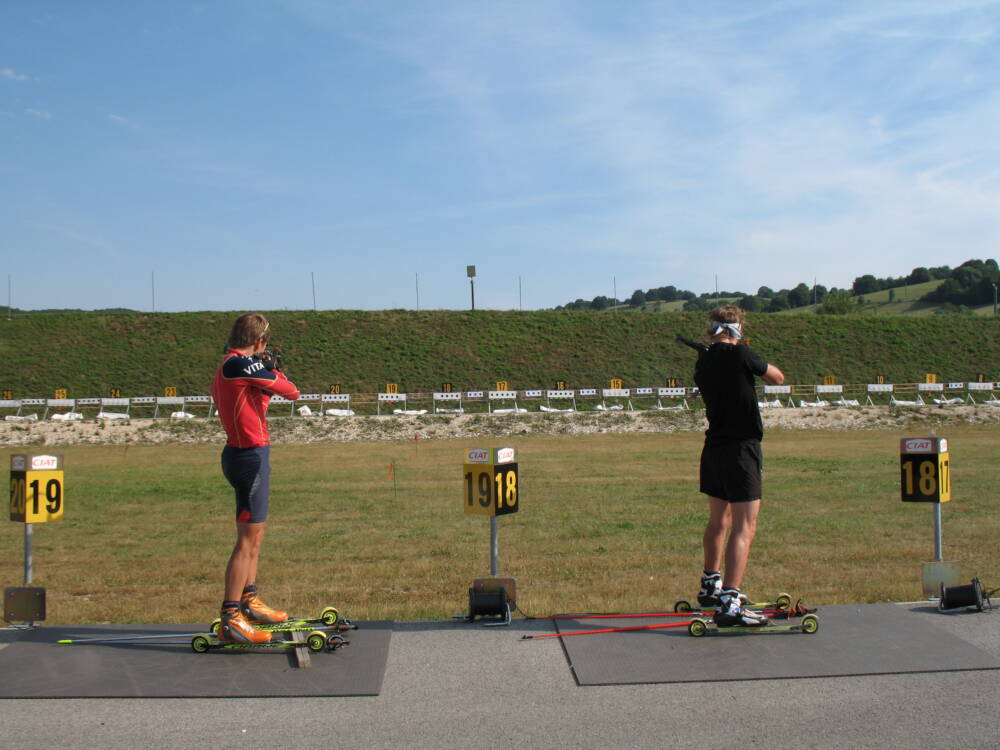 En hiver, en cas de manque de neige, la pratique du biathlon se fait sous la forme de marche/footing.