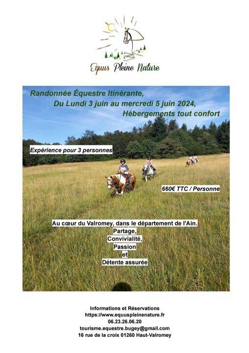 Virginie vous propose cette randonnée équestre itinérante au coeur du Valromey. Partage, convivialité, passion et détente assurée.