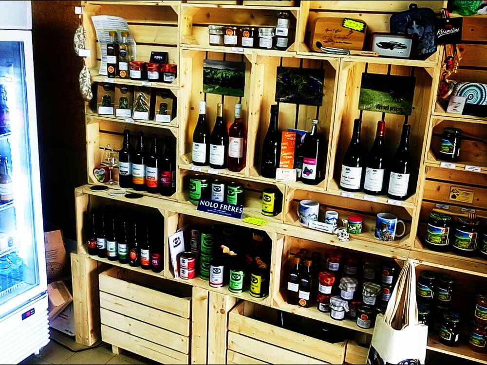 Vous trouverez dans la boutique un rayon produit du terroir, avec des producteurs du Bugey, miel, confiture, tisane, bières, vins du Bugey, Cerdon, quenelles, confitures, saucissons, escargots, jus, etc. Ainsi qu'un rayon souvenirs pour se faire plaisir ou le plaisir d'offrir.