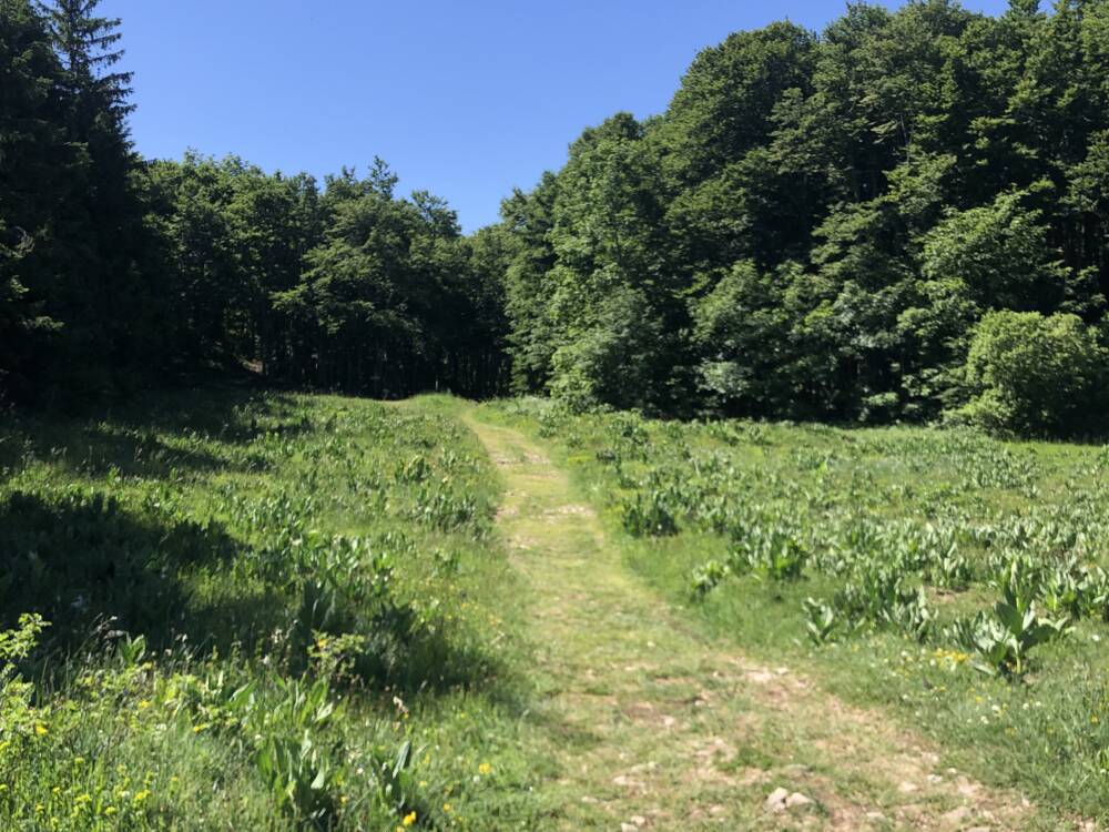 Le circuit se poursuit ensuite sur les chemins de crête faisant face au toit de l’Europe à l’est, à l’ombre des forêts de hêtres jusqu’au sommet du Plateau : Le Crêt du Nu. Il est de nouveau possible d’obtenir un panorama sur toute la chaîne des Alpes et le Mont Blanc avant d'entamer d’une descente bien méritée plongeant sur la station.