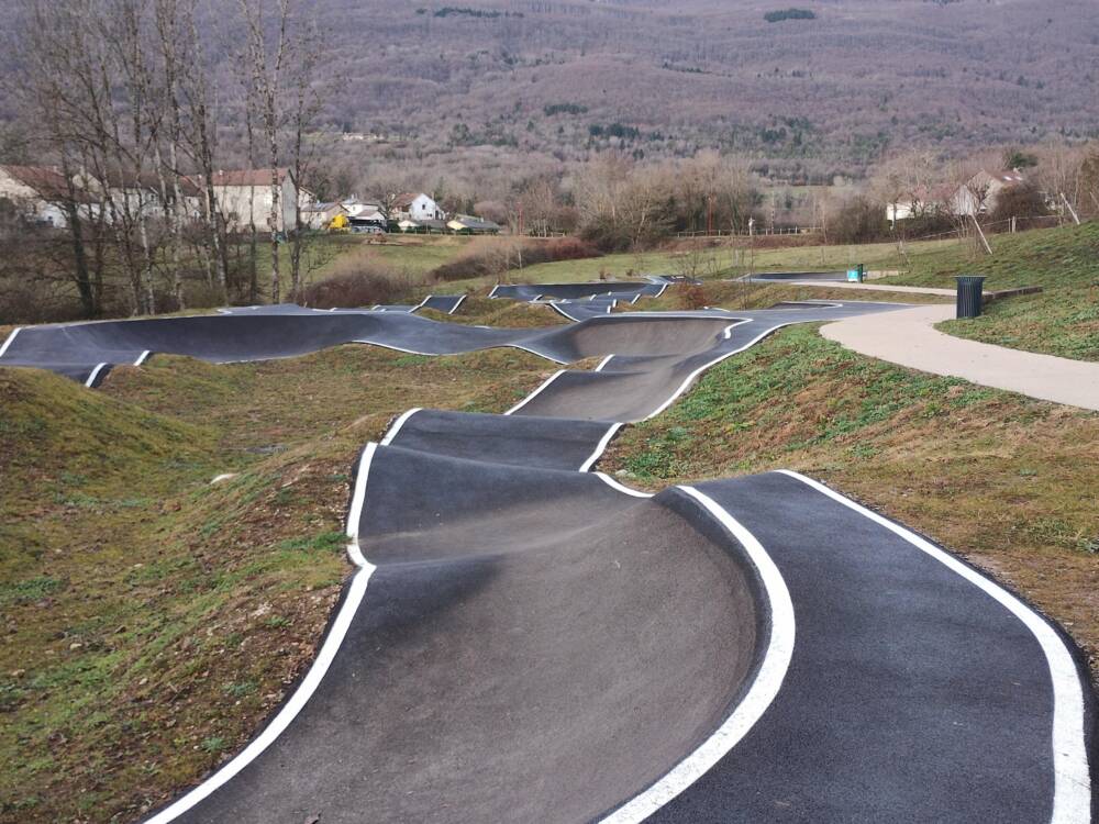 Venez rider et vous amuser au pumptrack d'Injoux, au pied sur Plateau de Retord.
