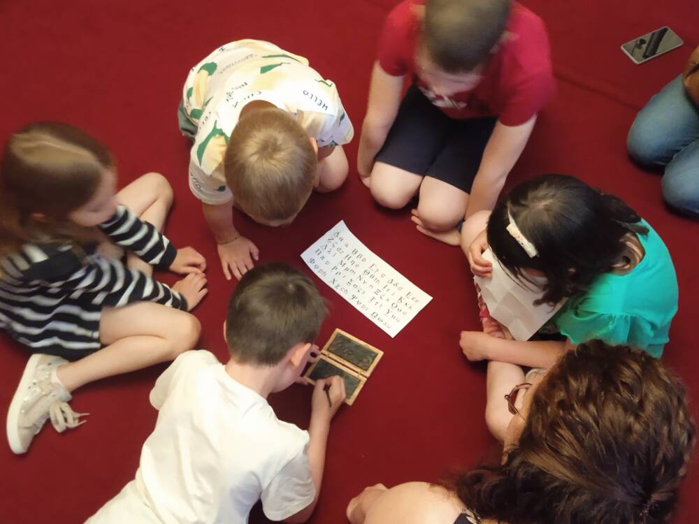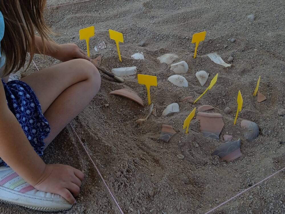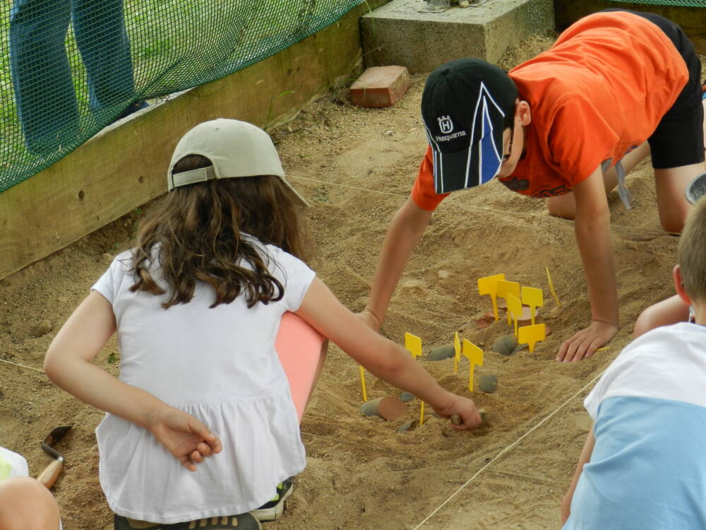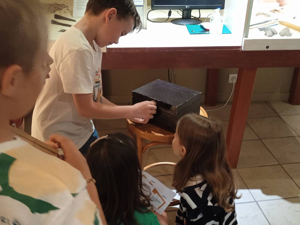 Les enfants, encadrés par un médiateur culturel, participent à des activités autour de l'archéologie et de l'Antiquité.