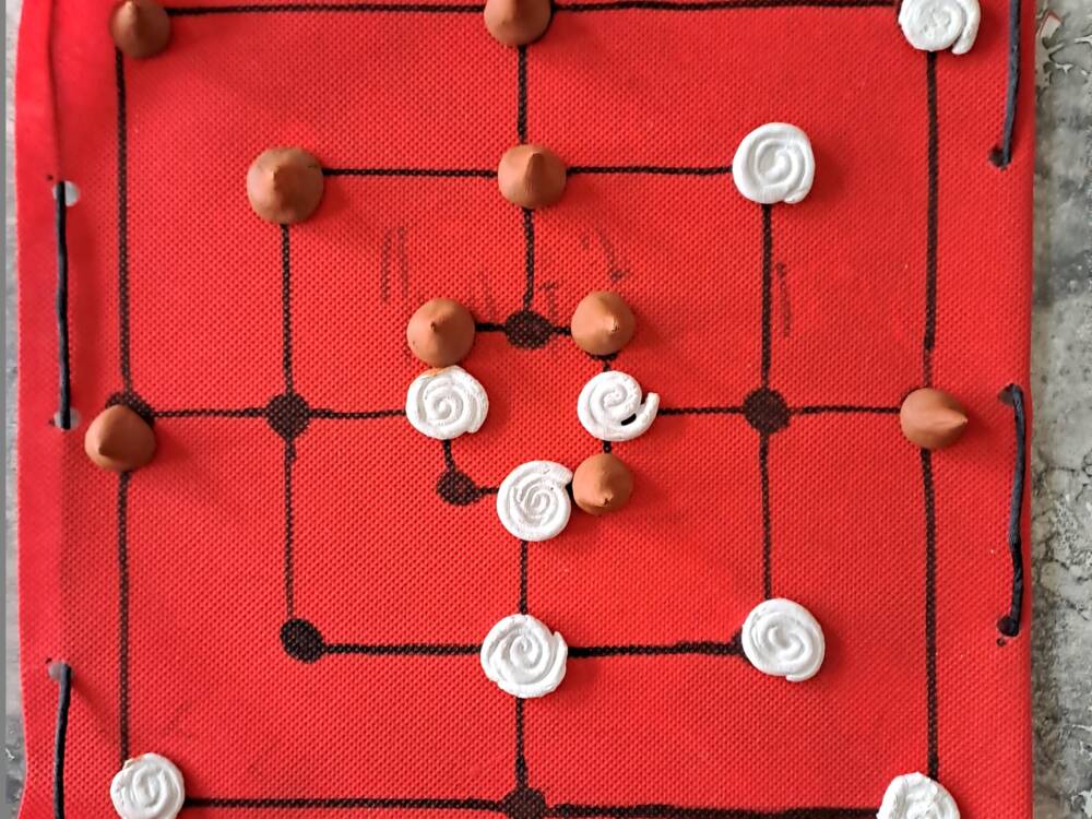 Ils fabriquent leur propre plateau : modelage des pions en argile, dessin du plateau et initiation aux stratégies de l’époque.