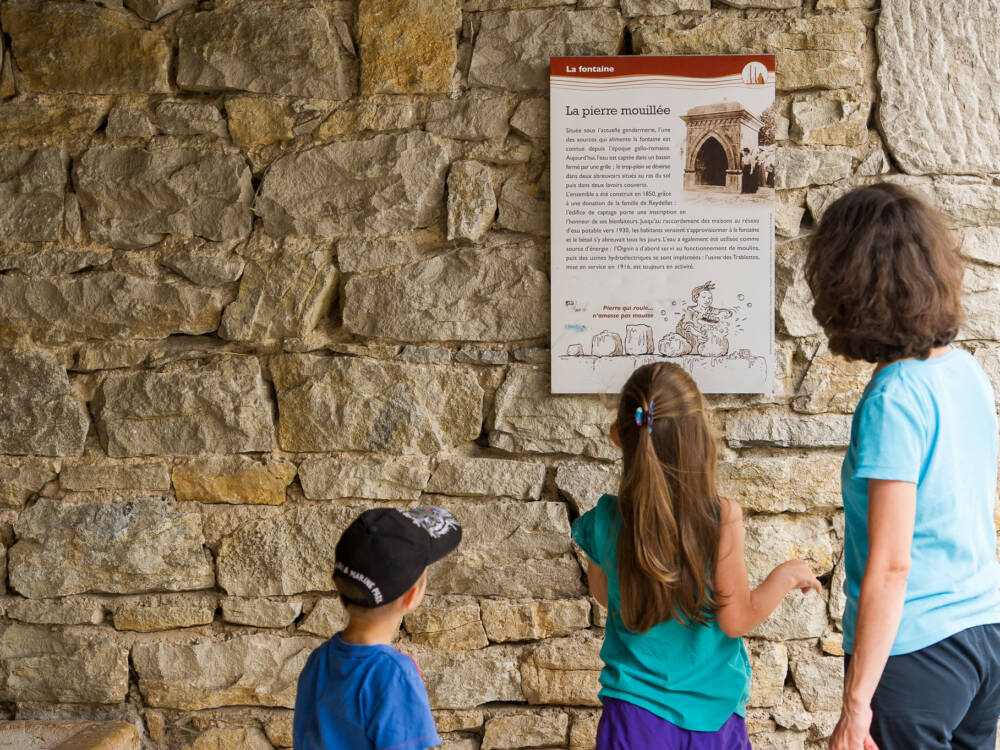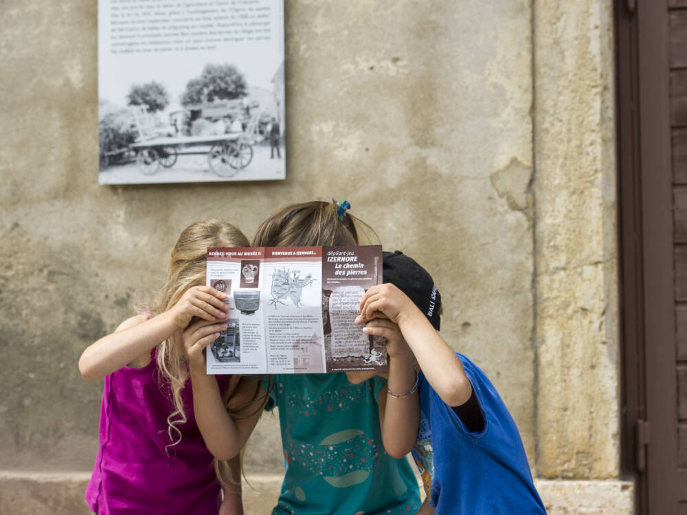 Parcours libre en extérieur. 7 panneaux explicatifs sont disposés le long de ce parcours thématique. Le "Chemin des pierres" permet à tous d'aborder les pans de l'histoire d'Izernore au travers des différentes pierres du village :