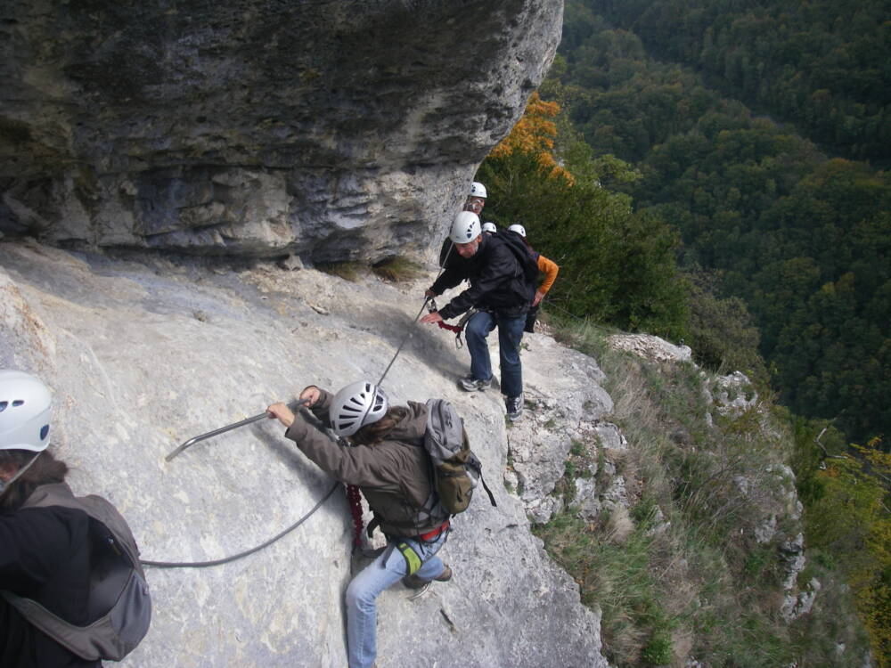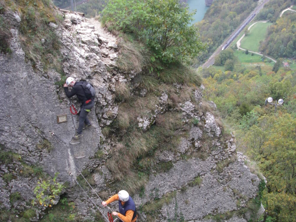 Cette via ferrata révèle un caractère historique car elle parcourt la raide paroi calcaire supportant le Fort l’Ecluse.