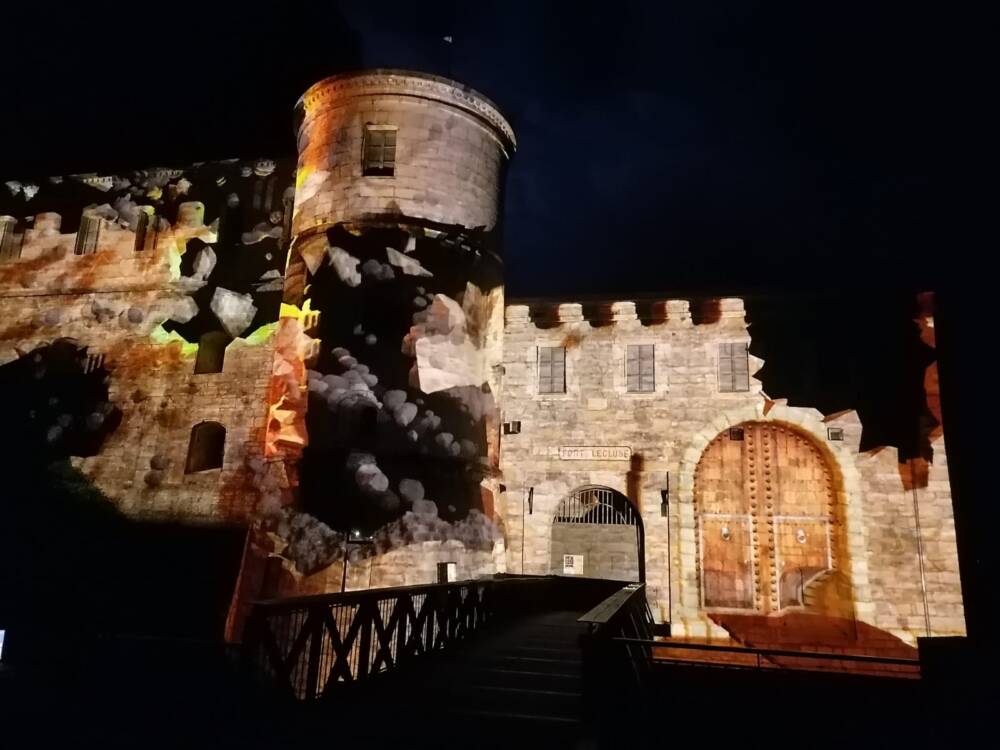 Rendez-vous à la tombée de la nuit devant le pont-levis et revivez l’histoire du Fort à travers un son et lumière fascinant et exceptionnel. 13 minutes saisissantes sur la façade de la Porte de France.