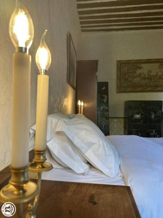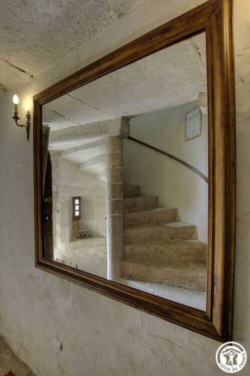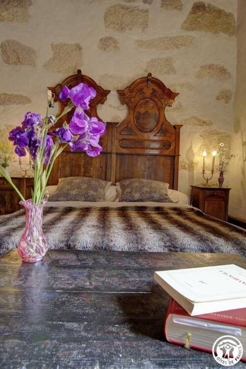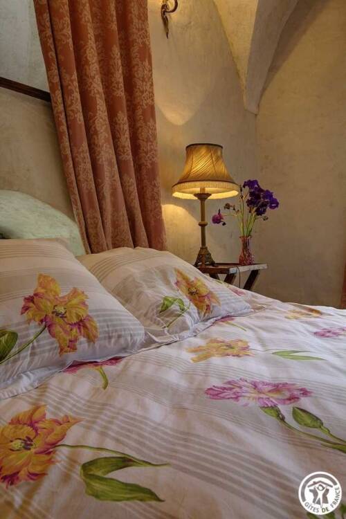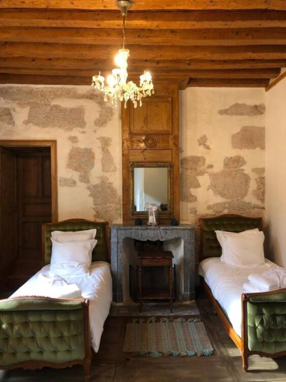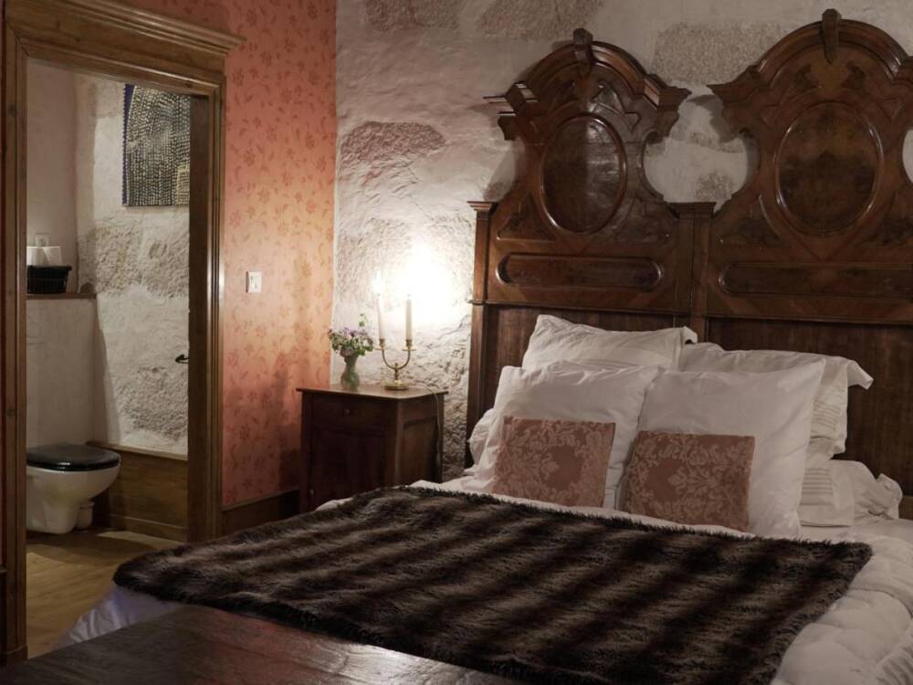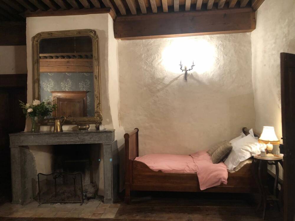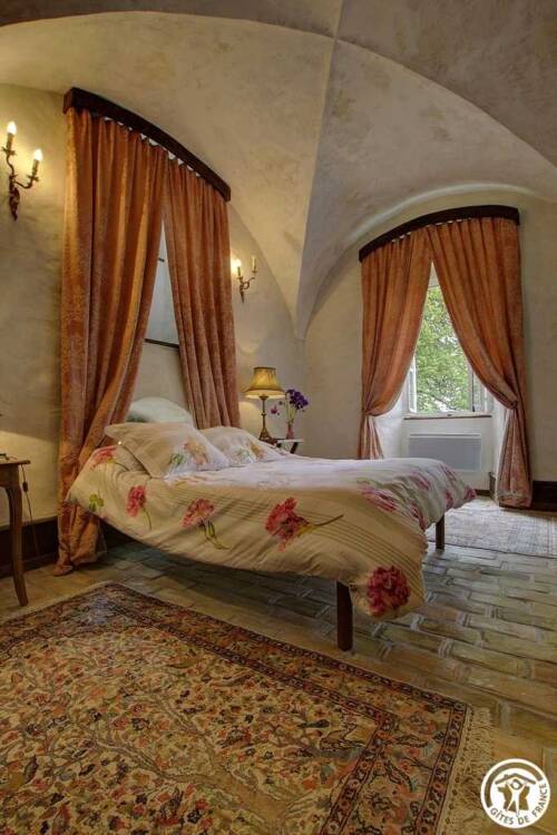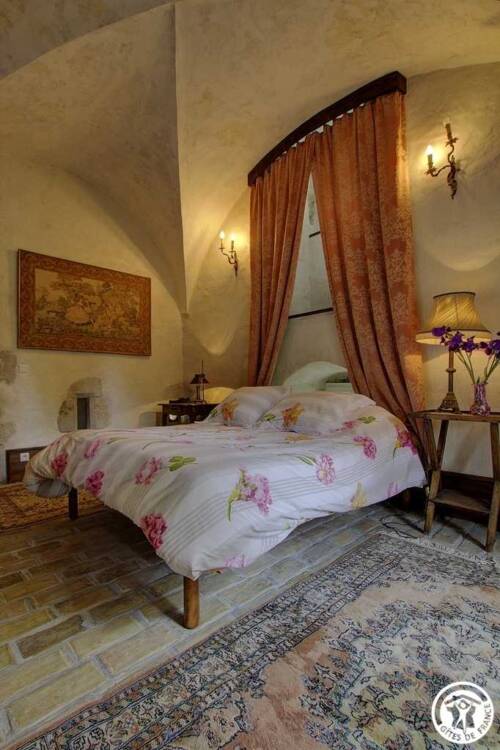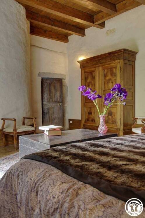 À l'étage supérieur, une chambre familiale "Le lieu secret", d'une capacité d'accueil de 4 personnes, comprend, une chambre avec deux lits simples, une grande cheminée en marbre où vous pourrez profiter des lieux dans les fauteuils du coin salon en toute quiétude; et d'une chambre parentale qui possède un lit double en 140*190, avec un très beau plafond en voûte, des fenêtres atypiques située dans la Tour de garde et son sol en pierre ; un décor qui vous emportera des siècles en arrières. Une salle de bain avec WC est privative à la chambre.