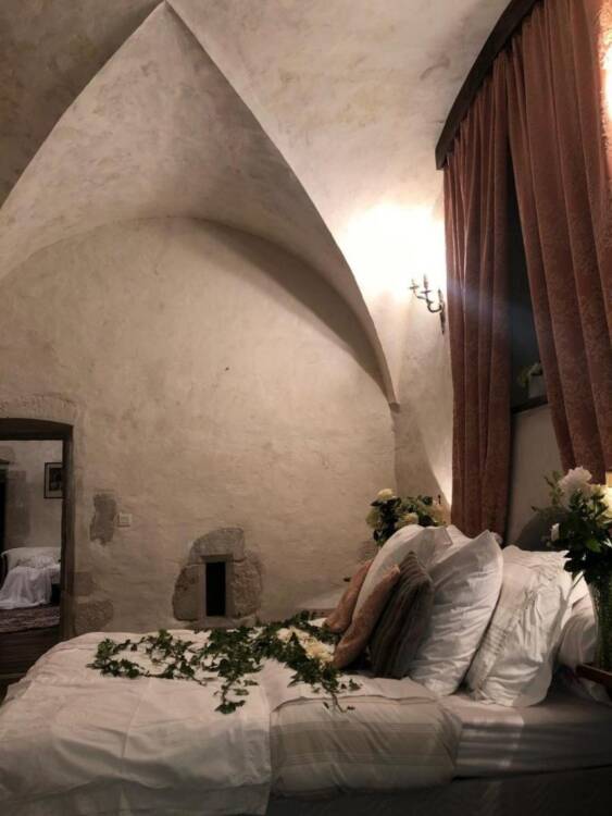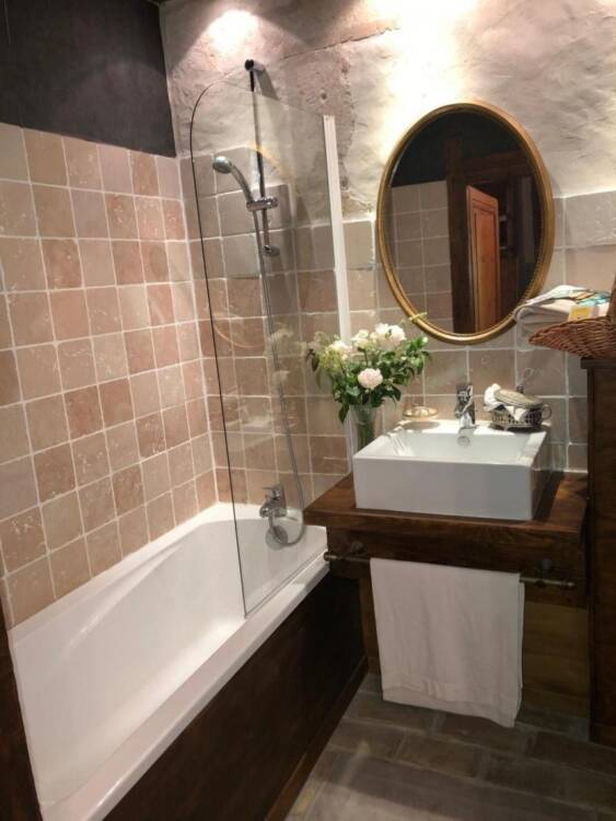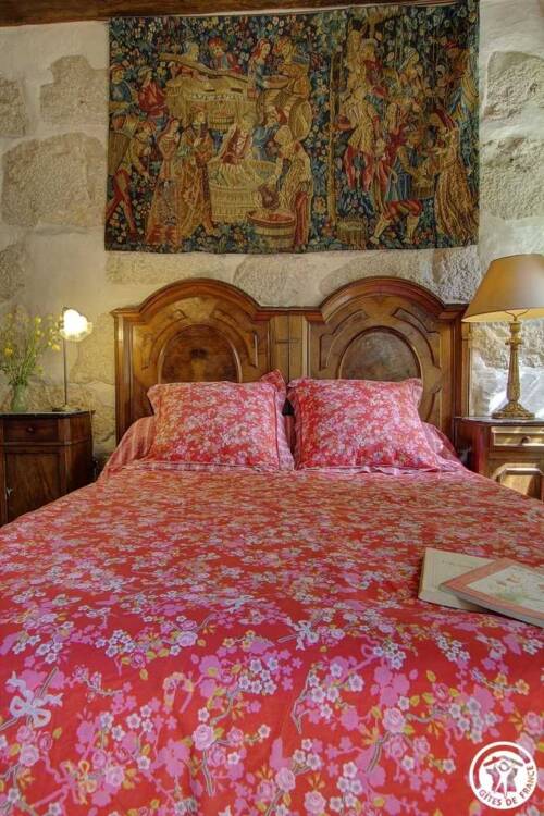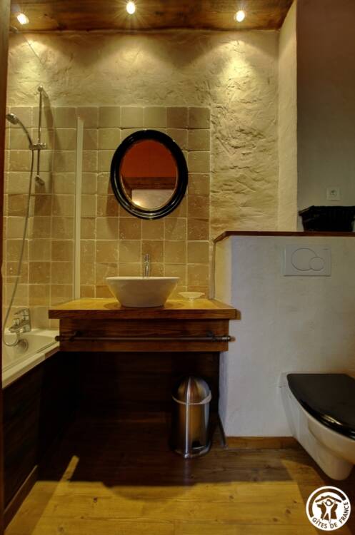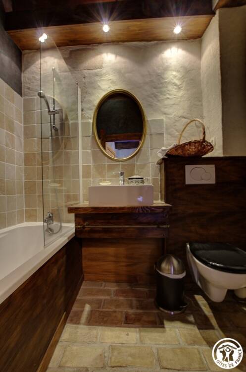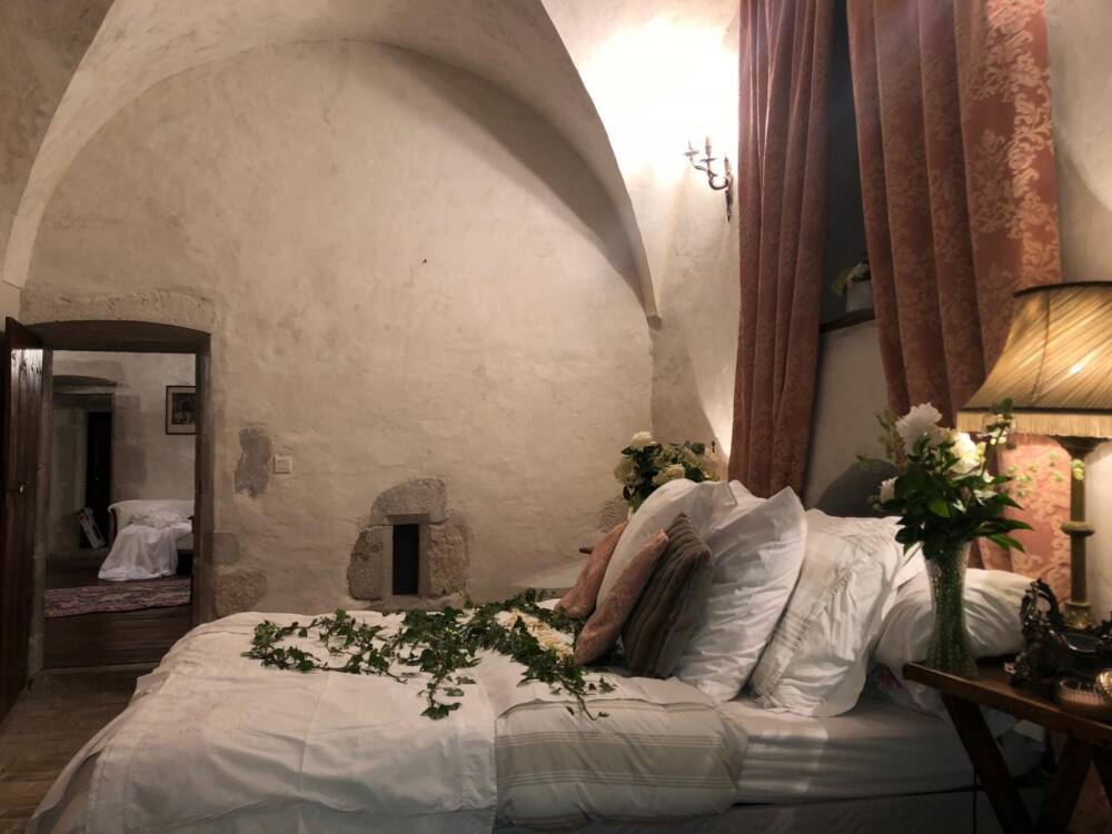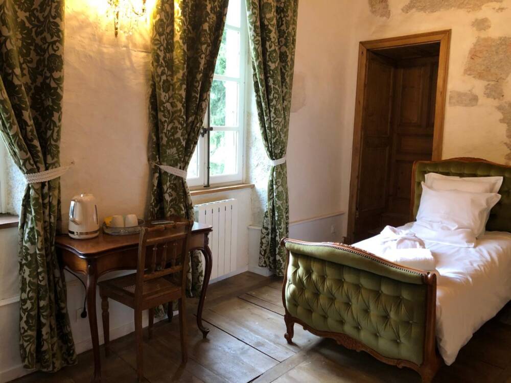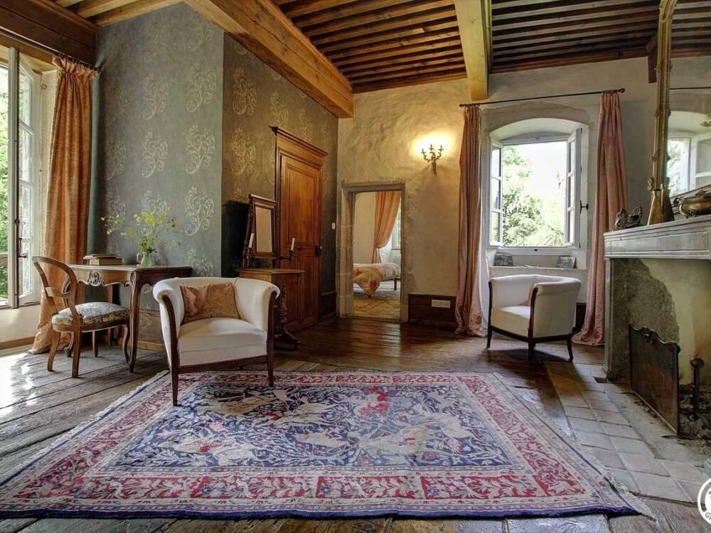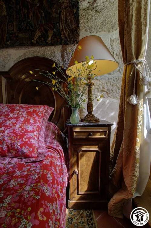 À l'étage supérieur, une chambre familiale "Le lieu secret", d'une capacité d'accueil de 4 personnes, comprend, une chambre avec deux lits simples, une grande cheminée en marbre où vous pourrez profiter des lieux dans les fauteuils du coin salon en toute quiétude; et d'une chambre parentale qui possède un lit double en 140*190, avec un très beau plafond en voûte, des fenêtres atypiques située dans la Tour de garde et son sol en pierre ; un décor qui vous emportera des siècles en arrières. Une salle de bain avec WC est privative à la chambre.