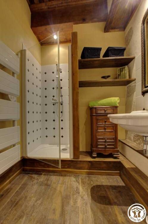 Au rez-de-chaussée, la chambre "Sous la protection des anges" est composée d'un lit en 140*190 avec un parquet en bois et un plafond "à la française". Une salle d'eau avec toilettes.