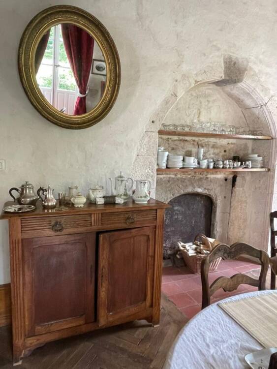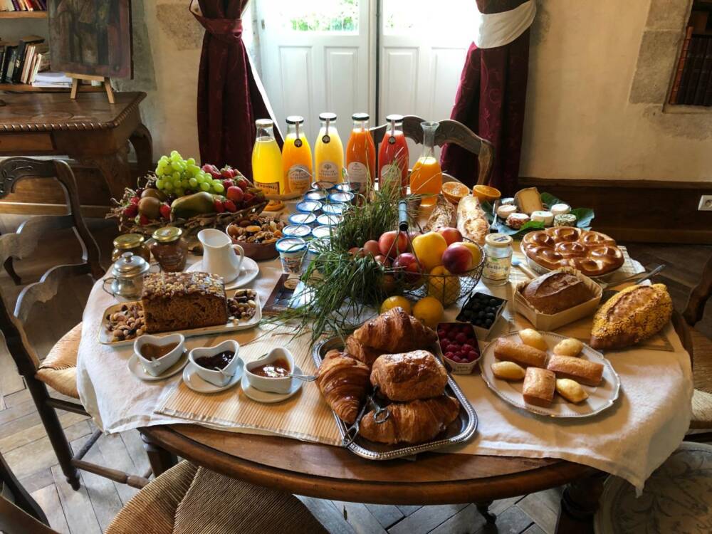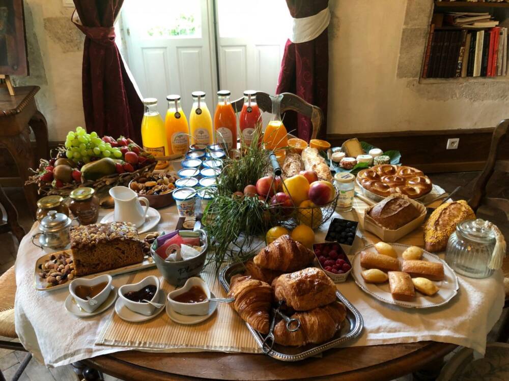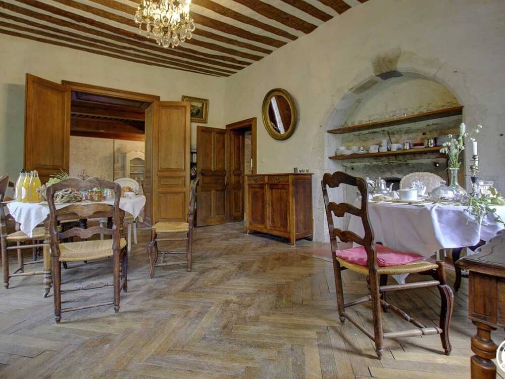 Les petits déjeuners très copieux seront pris dans la salle de réception ou l'été sur la terrasse donnant sur le parc du domaine. En hiver, la grande pièce de vie avec son imposante cheminée à double foyer ravira petits et grands et vous transportera vers d'autres temps, en grande intériorité au rythme du clocher du village.