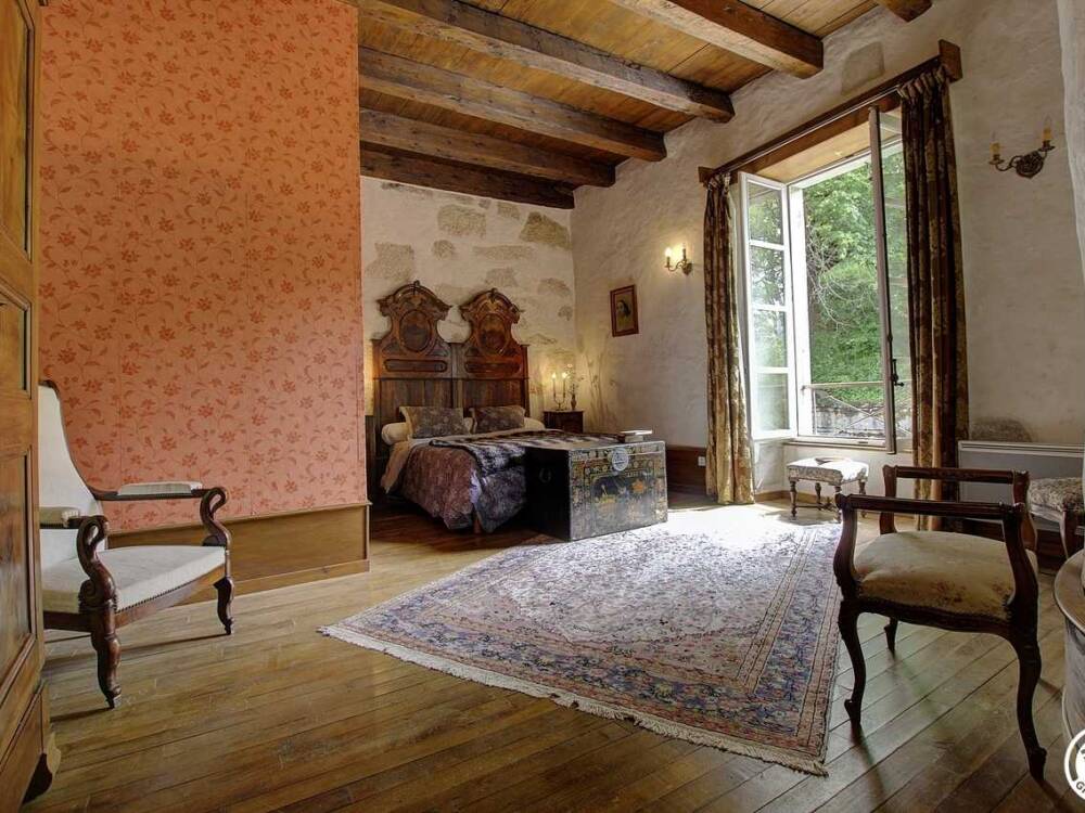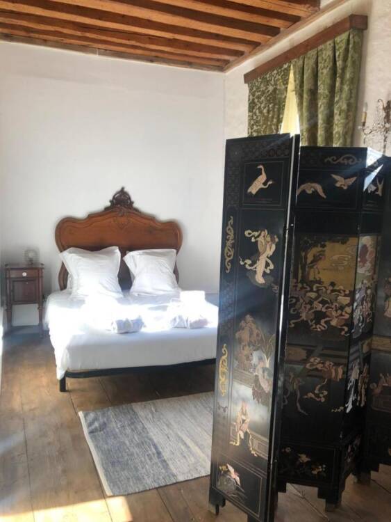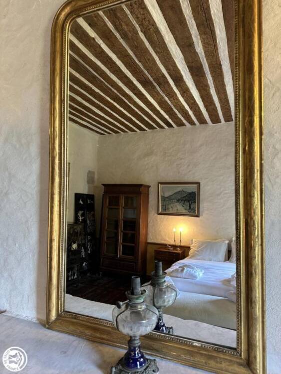 La 3e chambre d'hôtes "La révélation du mystère" située en face de la chambre familiale, vous propose un lit double en 160, avec une tête de lit imposante du XIXe siècle et sa malle en bois d'antan ; une salle de bain avec WC complète cet espace. Une chambre triple avec cheminée de plus de 30m2 et une dernière chambre familiale donnant sur le parc avec piscine.