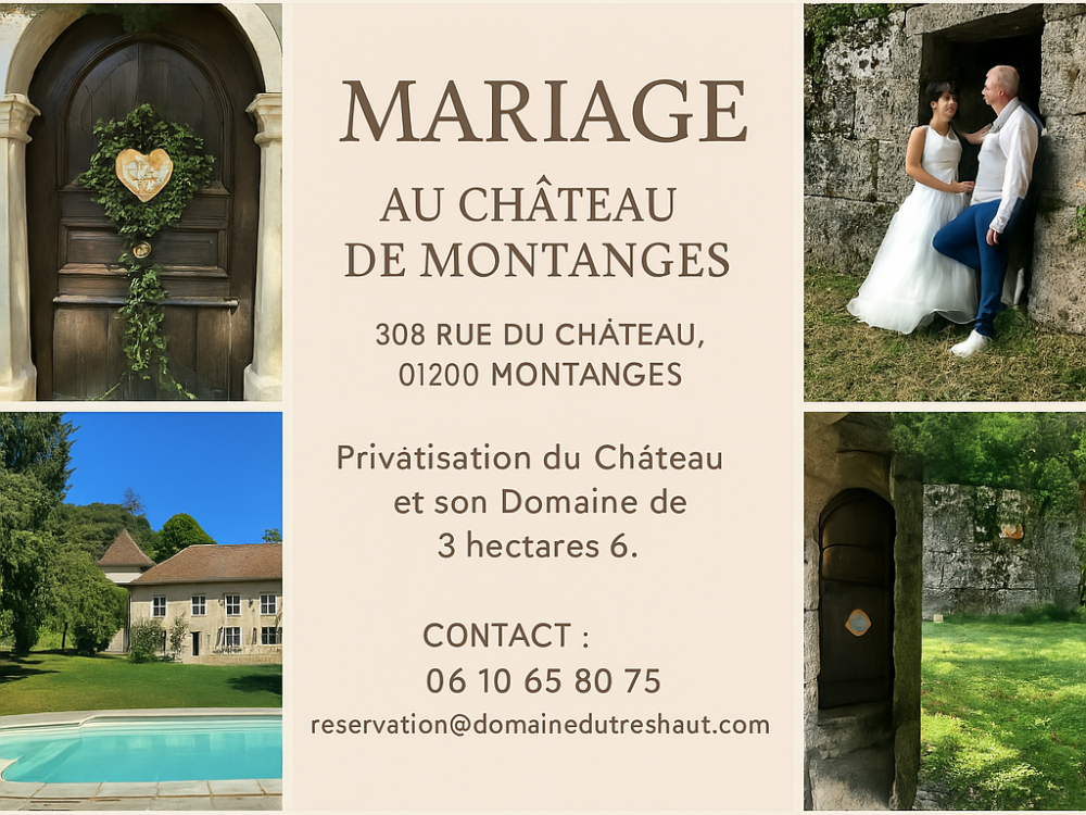 Afin de vous faire découvrir notre offre dédiée aux professionnels, c’est volontiers que nous vous accueillons pour une visite du Château de Montanges à 50 minutes de Genève, 1h d'Annecy et 30 min d'Oyonnax pour une agape dans le cadre de l’un de vos évènements récréatifs, lors d’un afterwork ou d’un déjeuner ou dîner d'affaires à organiser.