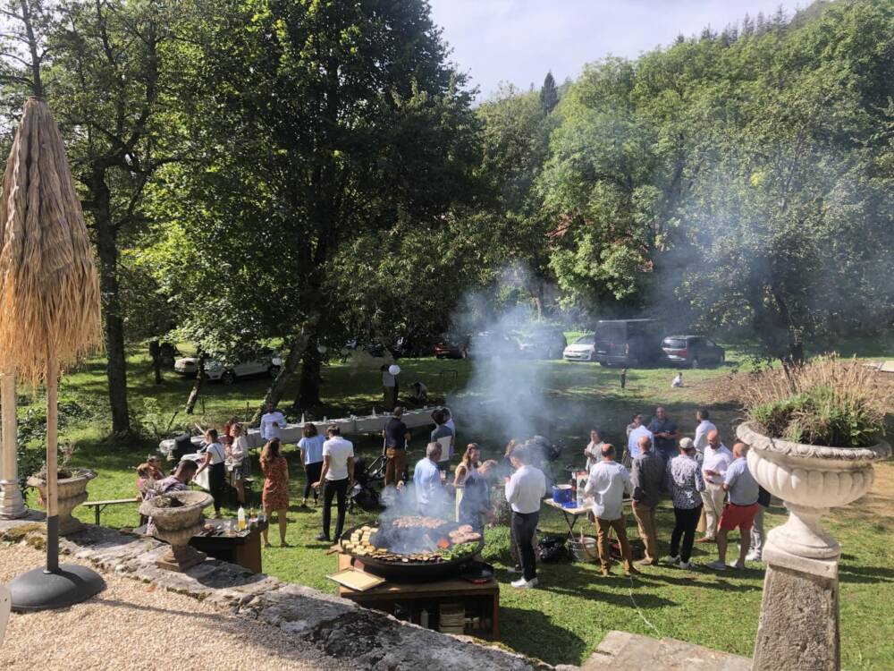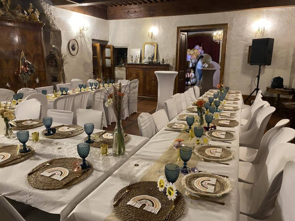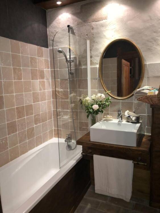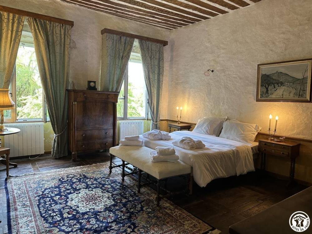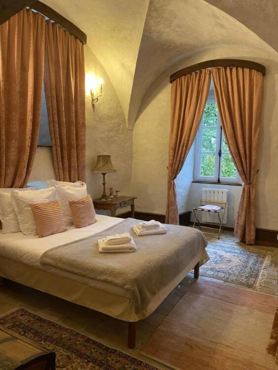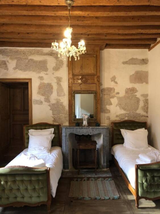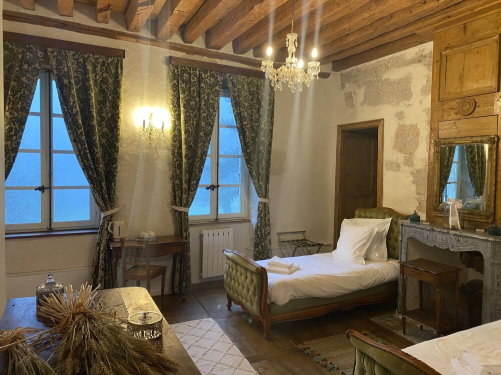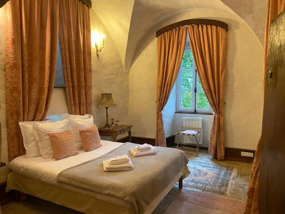 Ses tours, ses pierres, ses extérieurs, une belle recette pour ce lieu chargé de mystère et d'élégance. Niché entre des paysages de verdure, profitez des activités à proximité du Château : randonnées, pistes de ski de fond, alpin, raquette dans les stations de Giron, ou du plateau du Retord. Détendez-vous près de la Valserine, première rivière labellisée "Site Rivières Sauvages" de France. Et pourquoi pas profiter du Spa sur place ? Pensez à le réserver. Êtes-vous prêts à plonger dans le passé de ce joyau ? Alors commençons par les pièces de vie où l'ambiance médiévale de ce lieu ne demande qu'à vous envahir. Arrêtez-vous devant la cheminée et appréciez l'ambiance qui s'en dégage. Une cuisine voutée, en toute intimité. Laissez-vous séduire par les 5 chambres qui vous raconteront leur propre histoire, à travers, une décoration, un objet, une ambiance... Chaque chambre est équipée de sanitaires privatifs. A vous de choisir entre la chambre du rez-de-chaussée, ou les 4 dernières du 1er étage. Au rez-de-chaussée : cuisine, séjour, salon, détente, une chambre pour 2 personnes. A l'étage : quatre chambres dont : deux chambres pour deux personnes, deux chambres pour 4 personnes, et la dernière pour 3 personnes. Sanitaires privatifs à chaque chambre soit 4 baignoires et une douche pour la chambre du Rez-de-chaussé. Laissez-vous porter : les lits sont faits à l'arrivée, le linge de toilette et les charges sont comprises (électricité et bois). Vous souhaitez vous décharger du ménage ? Un cout de 120.00 € vous sera demandé. Mitoyen à la tour d'habitation de la propriétaire, terrasse privée. Jardin accessible directement depuis le séjour. Chauffage bois et électrique.