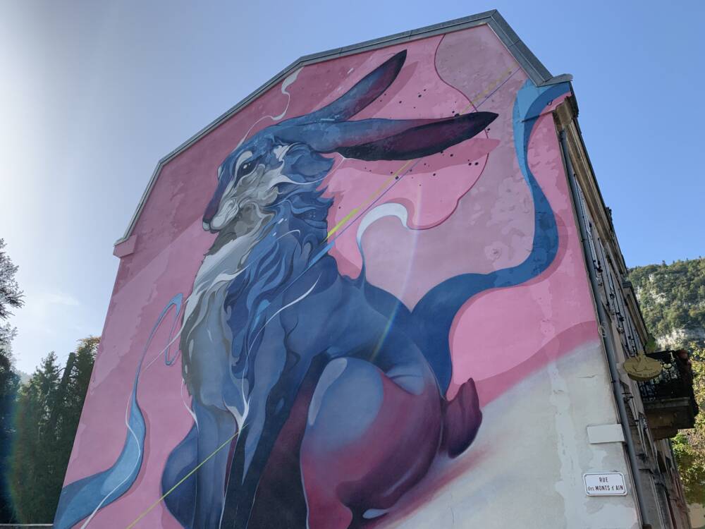 Pascal LAMBERT, alias KALOUF a réalisé cette fresque en 2022. Né en 1978 à Port Gentil (Gabon), il réside et travaille à Lyon.