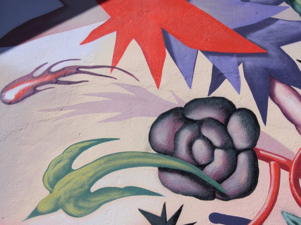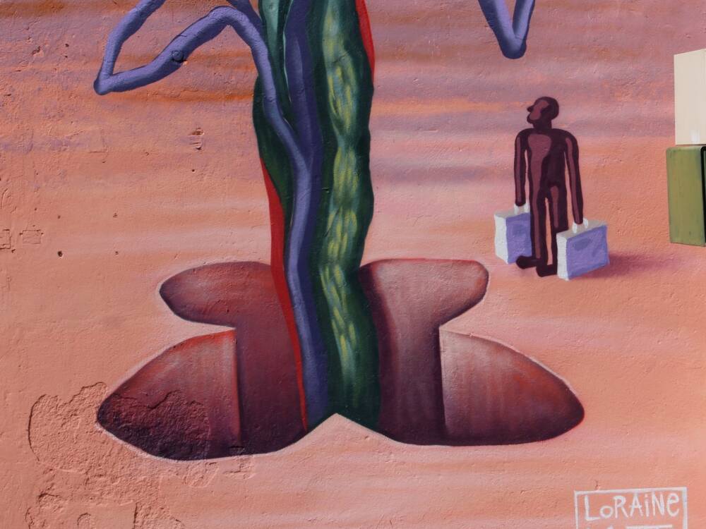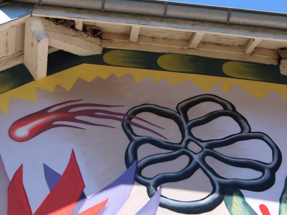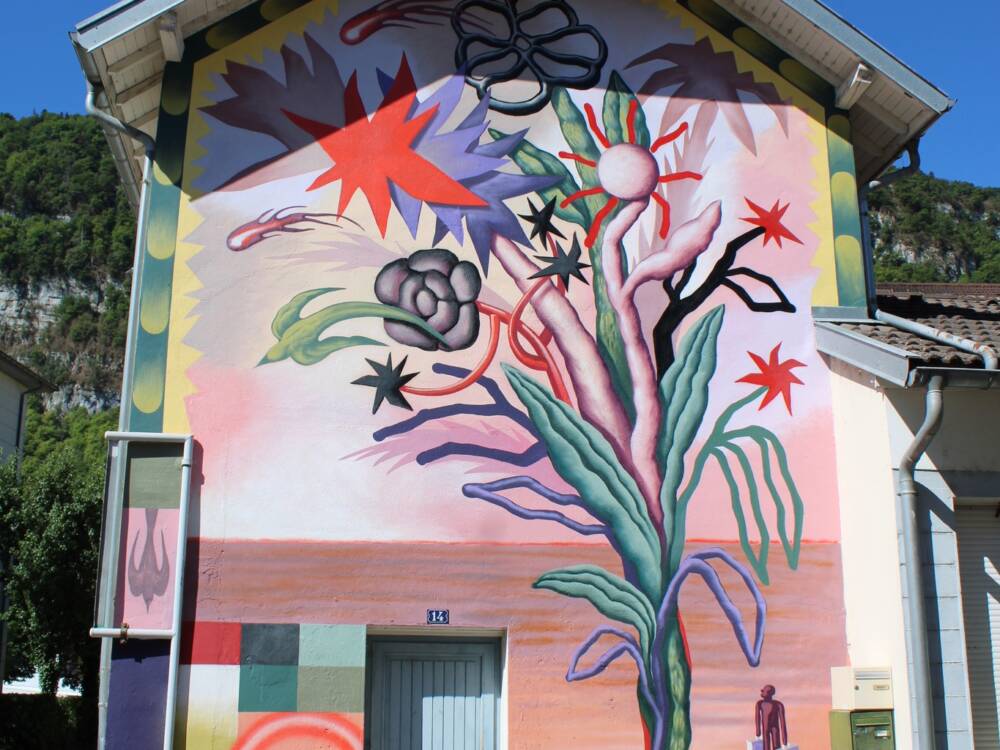 Loraine Motti aborde le thème du paysage, interprété de manière onirique et rythmé par des choix de couleurs décalées. La fresque a vu le jour en 2024, apportant une nouvelle touche artistique à Woua'Art Festival.