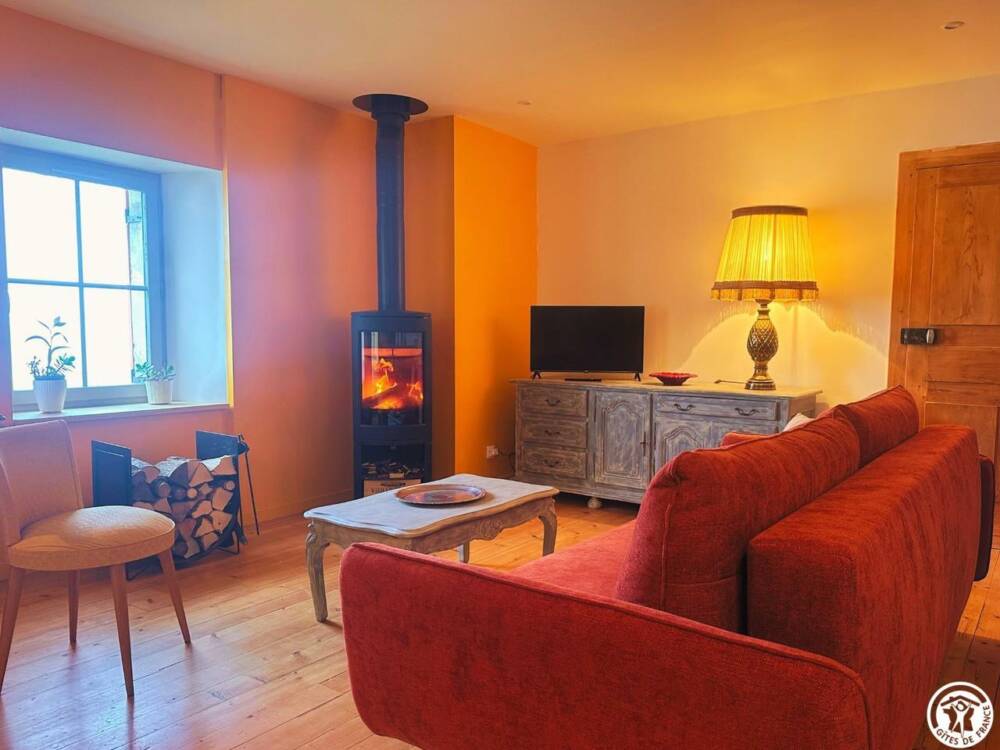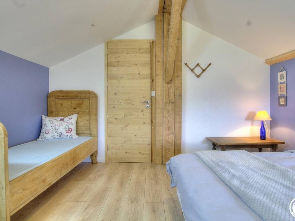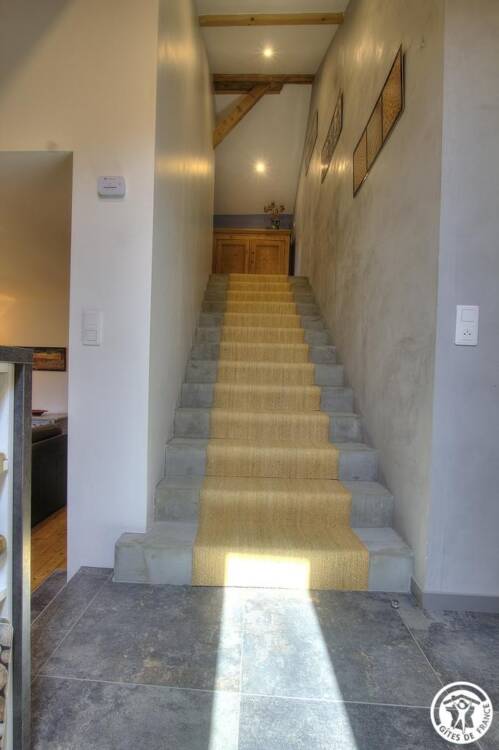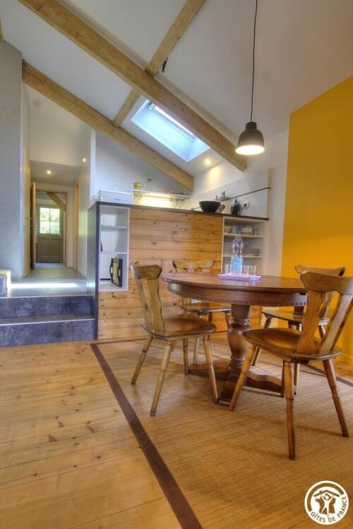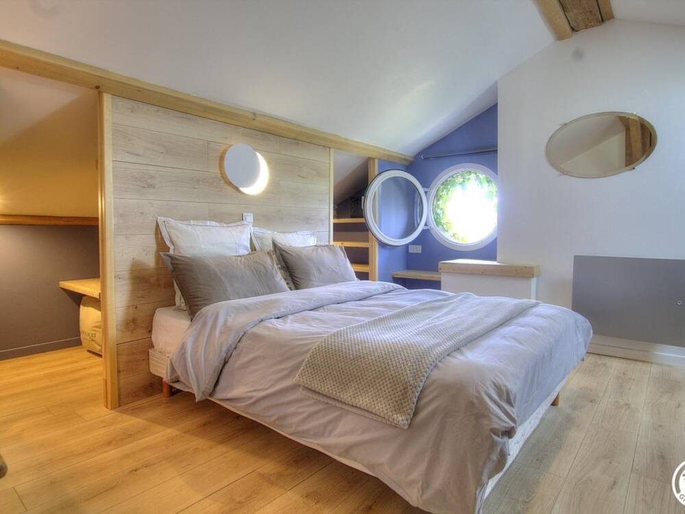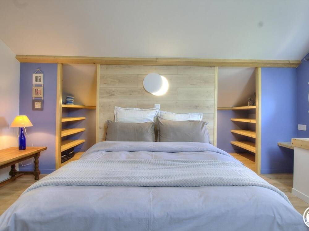 1 étage plus haut depuis la cuisine : chambre composée d'un lit en 140 et un lit enfant en 80X170. Deux dressings de chaque côté du lit. Voyagez l'esprit léger : les lits sont faits à votre arrivée. Le linge de maison et de toilette fournis. Les charges ? Comme le sourire des propriétaires, fournies avec. Pour le forfait ménage, un forfait de 50€ vous sera demandé. Parking privé. Chauffage électrique et bois. Gîte mitoyen à la résidence des propriétaires. Jardin commun à disposition.