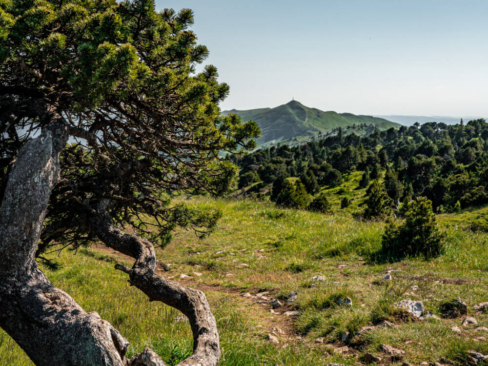 Depuis les sommets du Reculet et du Crêt de la Neige – les plus hauts du massif jurassien – le regard s’ouvre à 360°. D’un côté, une vue spectaculaire sur le bassin lémanique, Genève, le Mont Blanc et toute la chaîne des Alpes ; de l’autre, un panorama plongeant sur la vallée de la Valserine et les reliefs sauvages du Haut-Jura, avec le Crêt de Chalam en toile de fond.