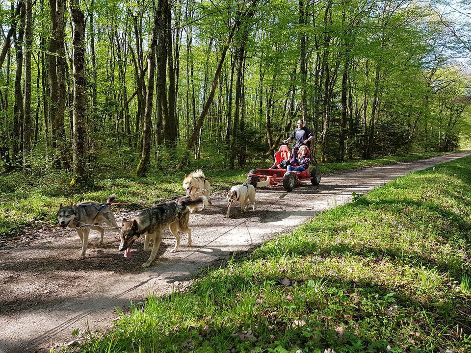 Confortablement assis dans un kart tracté par les chiens dirigés par le musher, profitez d'une balade sur le Retord. Sensations garanties !