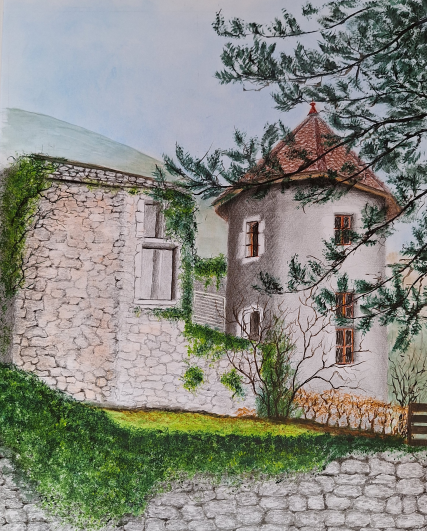Suzanne GUILLAUME aime associer plusieurs techniques (crayons, fusains, pastel, encre de chine, aquarelles) pour faire parler les vieilles pierres, les scènes de la vie et les portraits