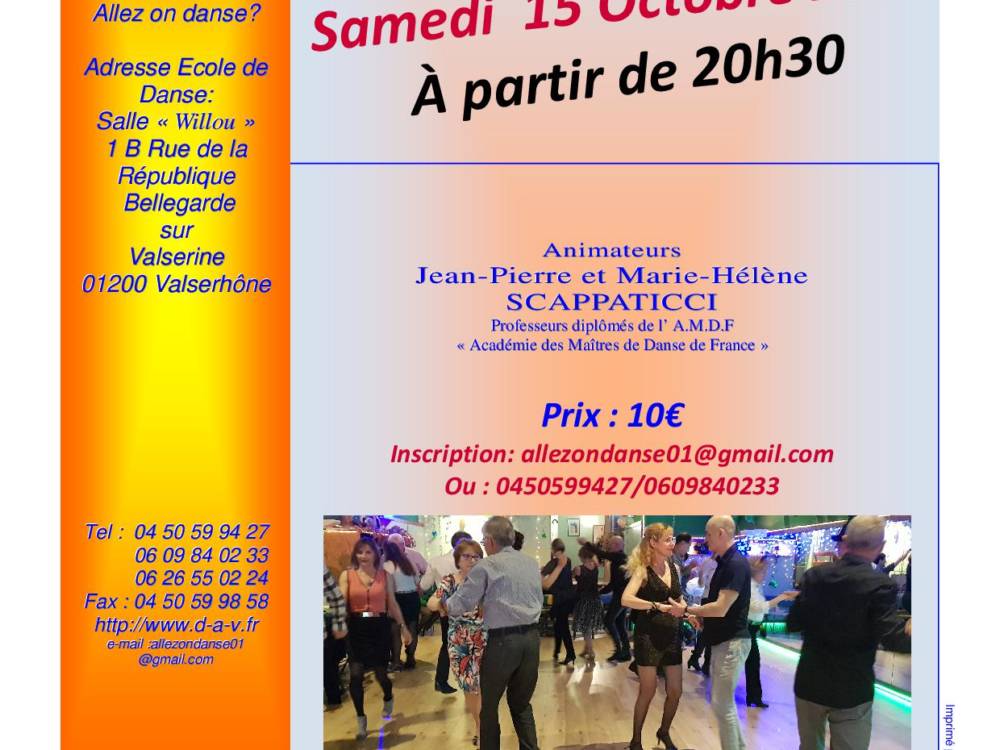 Soirée dansante toutes danses. Animée par les professeurs.