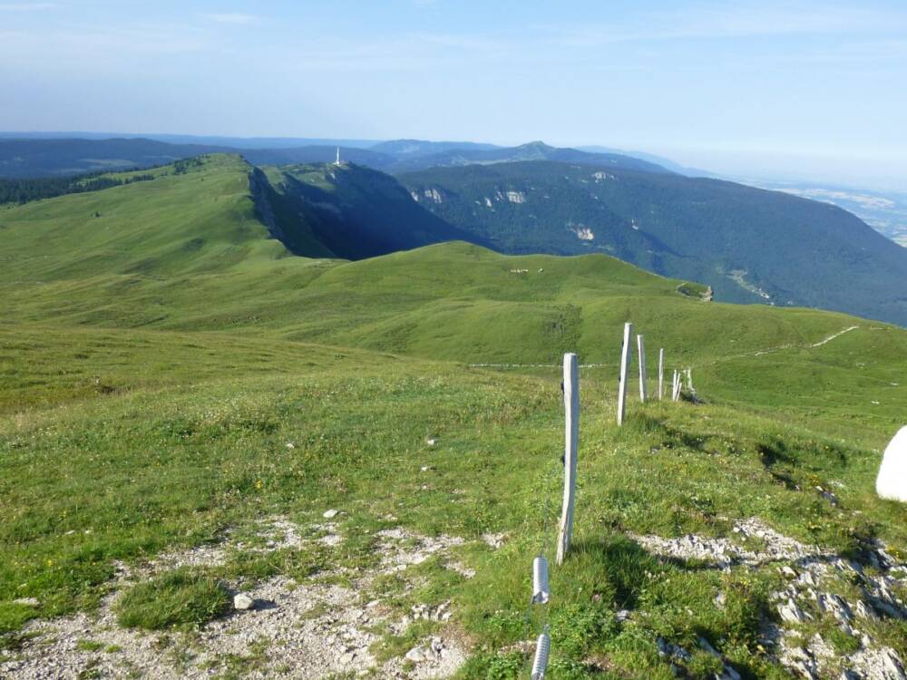 De par sa situation face aux Alpes et au Léman, la Haute Chaine, qui inclut les plus hauts sommets des Montagnes du Jura (Crêt de la Neige, Reculet, Colomby de Gex, Crêt d’Eau…), forme un balcon de premier choix pour tous les randonneurs amateurs de grands panoramas. A ce titre Le Balcon du Léman®