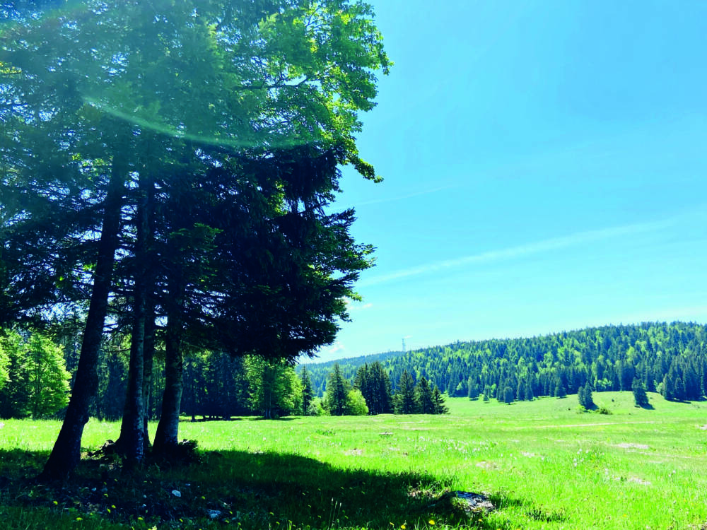 Le Plateau de Retord (1 150 m d’altitude) situé au sud du Massif du Jura, au relief karstique et à l’habitat dispersé, vous invite à découvrir l’immensité de ses grands espaces et sa flore remarquable qui envahit les pâturages au printemps.