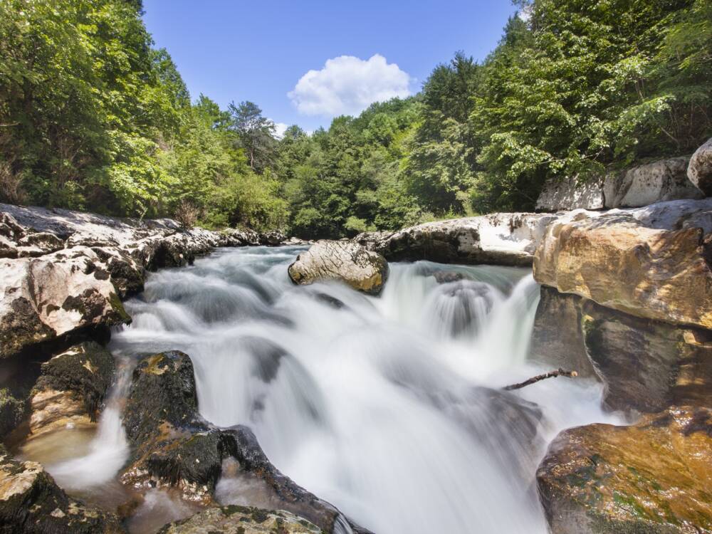 Le circuit emprunte une partie de la Voie du Tram, passage près de la Mêlée des eaux : confluence entre la Valserine et la Semine puis retour en rive droite de la Valserine.